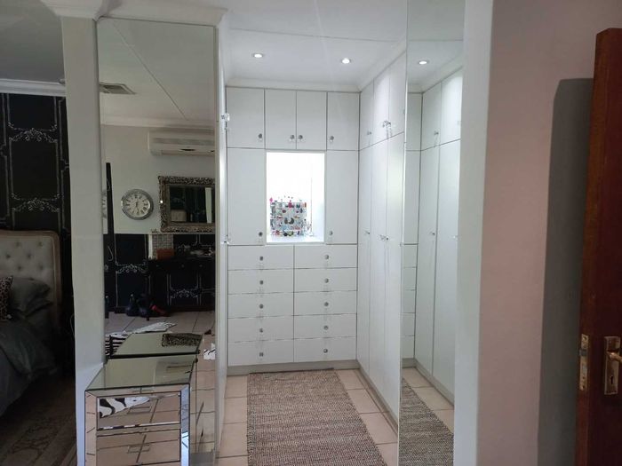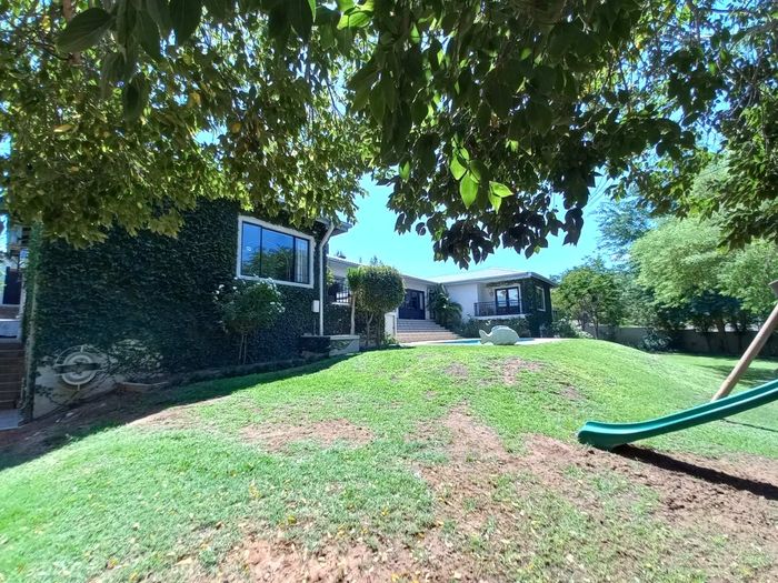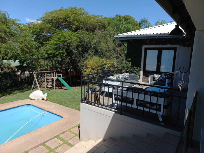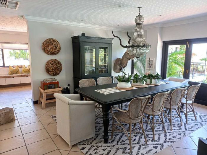A stunning, upgraded 5-bedroom house with pool, double garage, off-grid solar system, canal water, and security features in a desirable neighborhood.