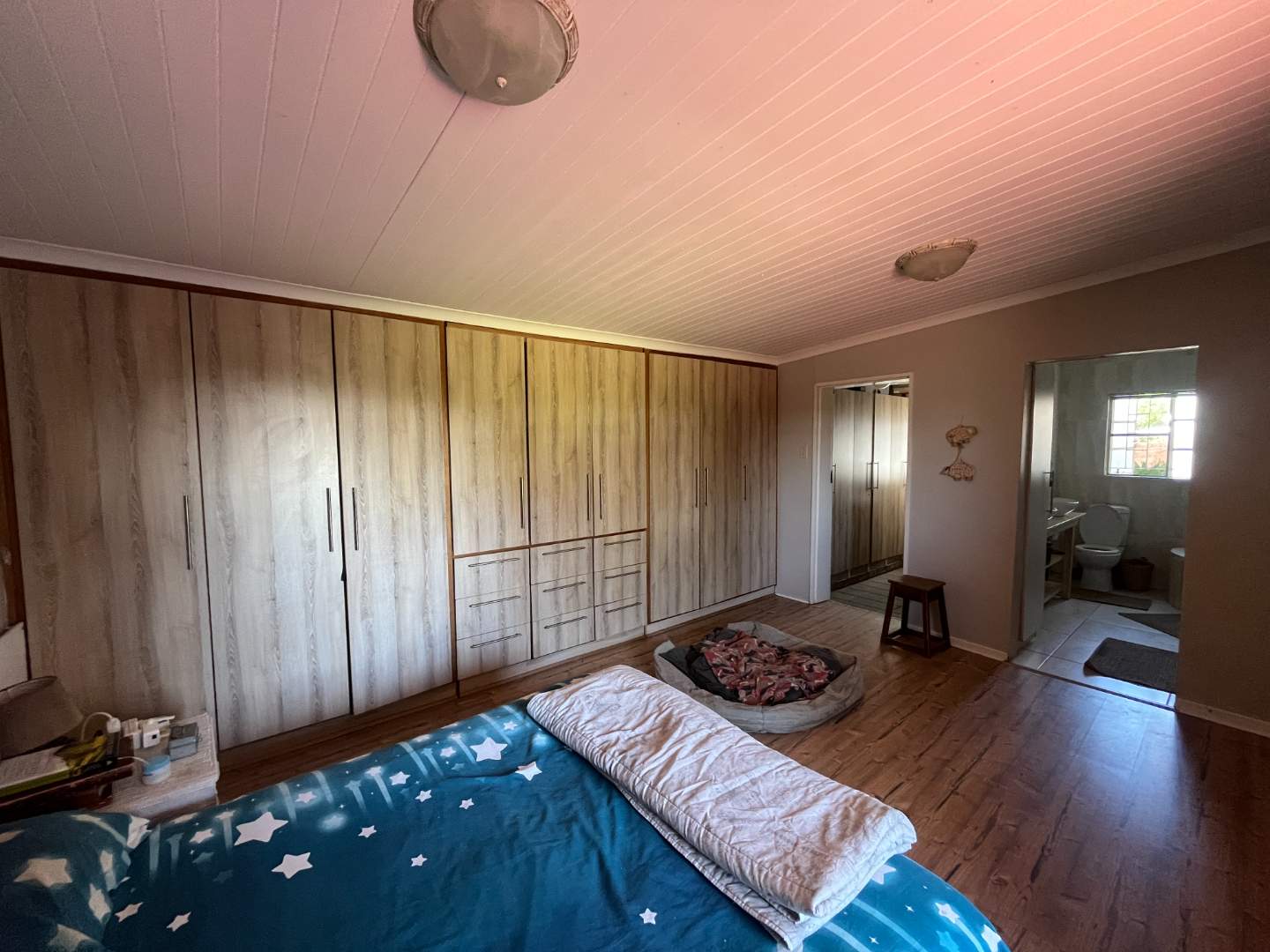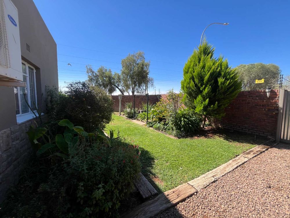 Above the house, the spacious 2-bedroom flat offers endless possibilities — whether for extended family, guests, or as an income-generating opportunity. It features an open-plan living area and kitchen with breakfast nook, built-in cupboards, an eye-level oven, hob and extractor fan. The modern bathroom is stylish and complete, while the balcony with its built-in braai and special slide open windows offers a breathtaking view over the veld — a truly peaceful retreat. The flat also has its own central water cooler and split units in the bedrooms for extra comfort.