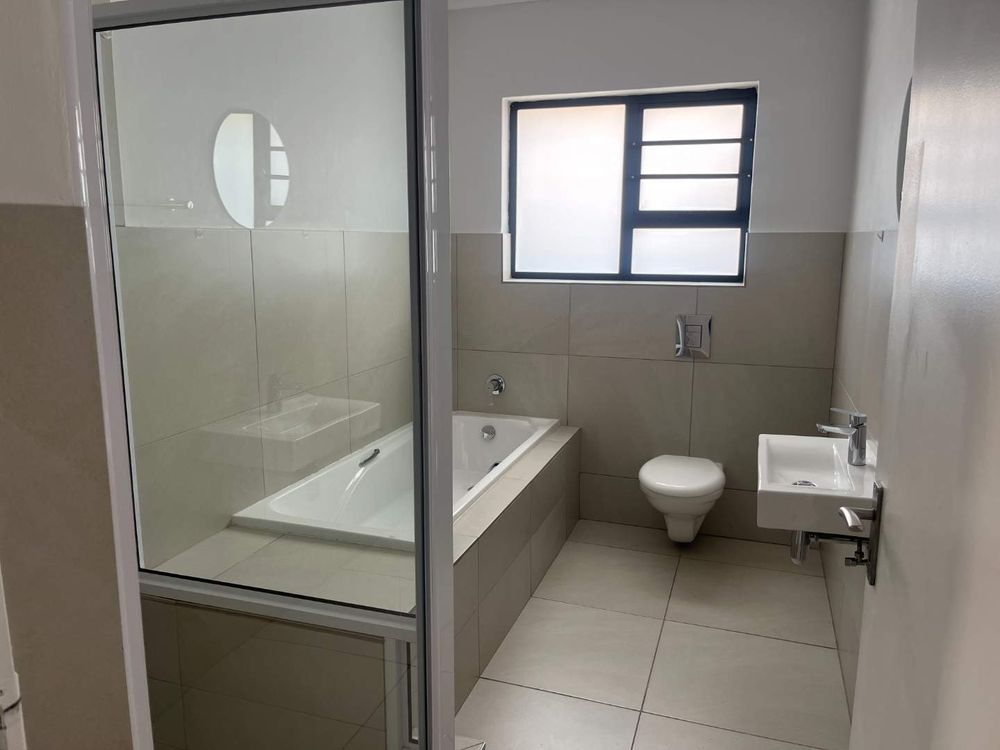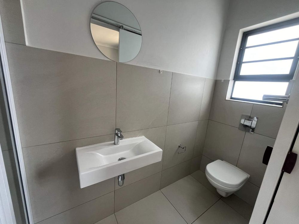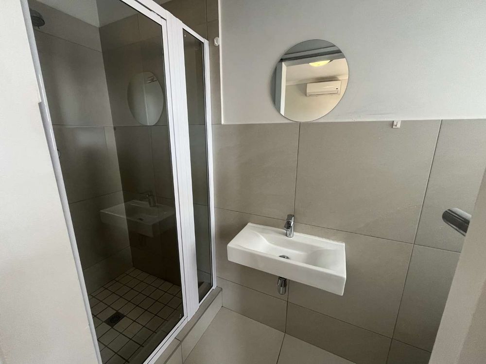 The home offers 3 bedrooms with laminated floors. Two bedrooms have built-in cupboards, and the third bedroom can also be used as a study to work from home. The main bedroom has a split unit and en-suit bathroom with shower, basin and toilet. The second bathroom is modern and spacious with a bath, shower, basin and toilet.