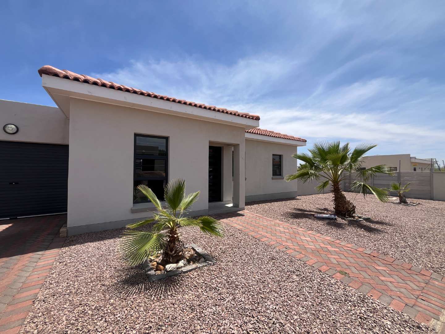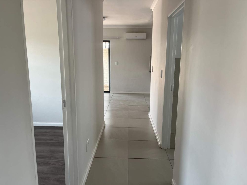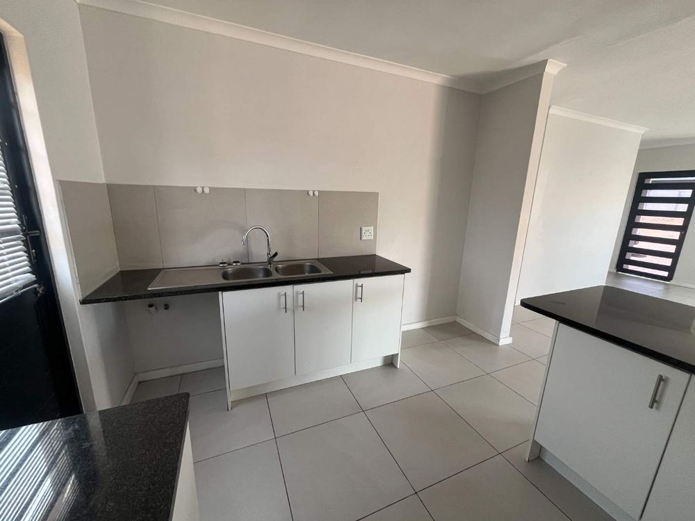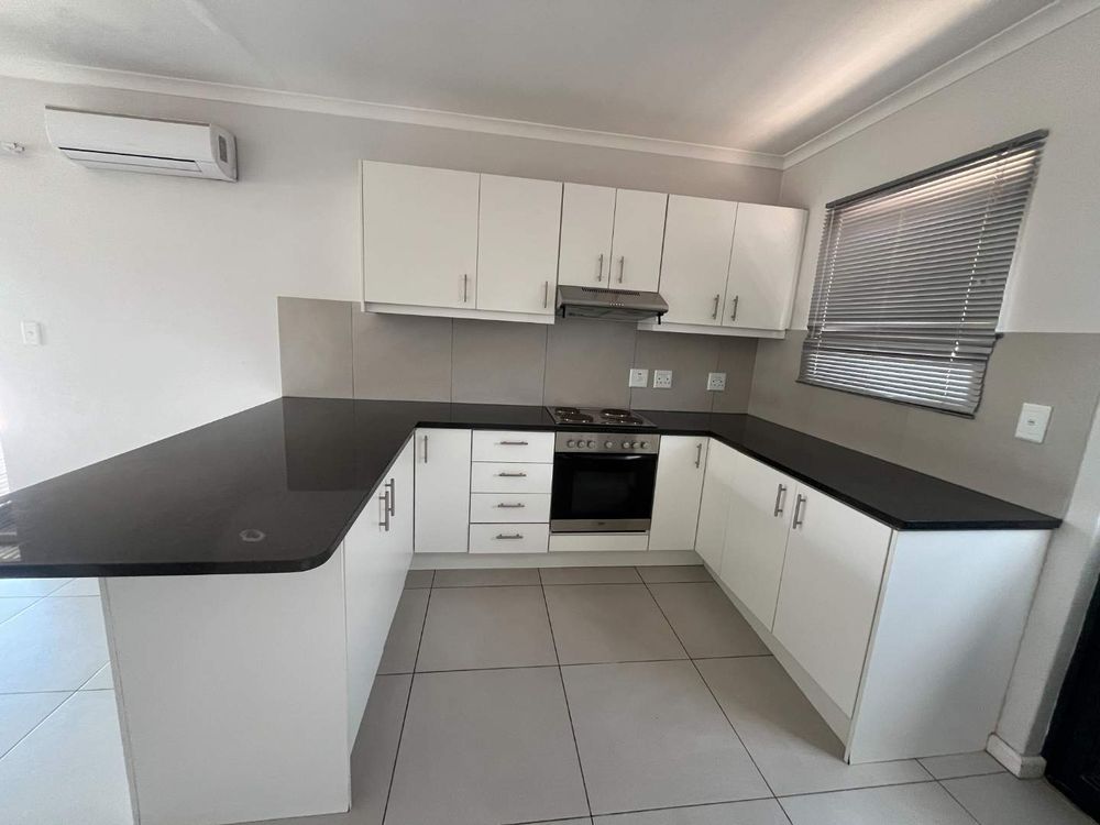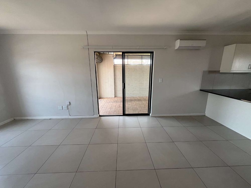 On entering this lovely home, you are welcomed by a spacious open plan living area and well-equipped kitchen with granite tops, undercounter oven, hob and extractor fan, and a washing machine connection. The living room has a split unit and sliding doors to an enclosed carport with neat paving. The yard is spacious, and the lawn has irrigation.
