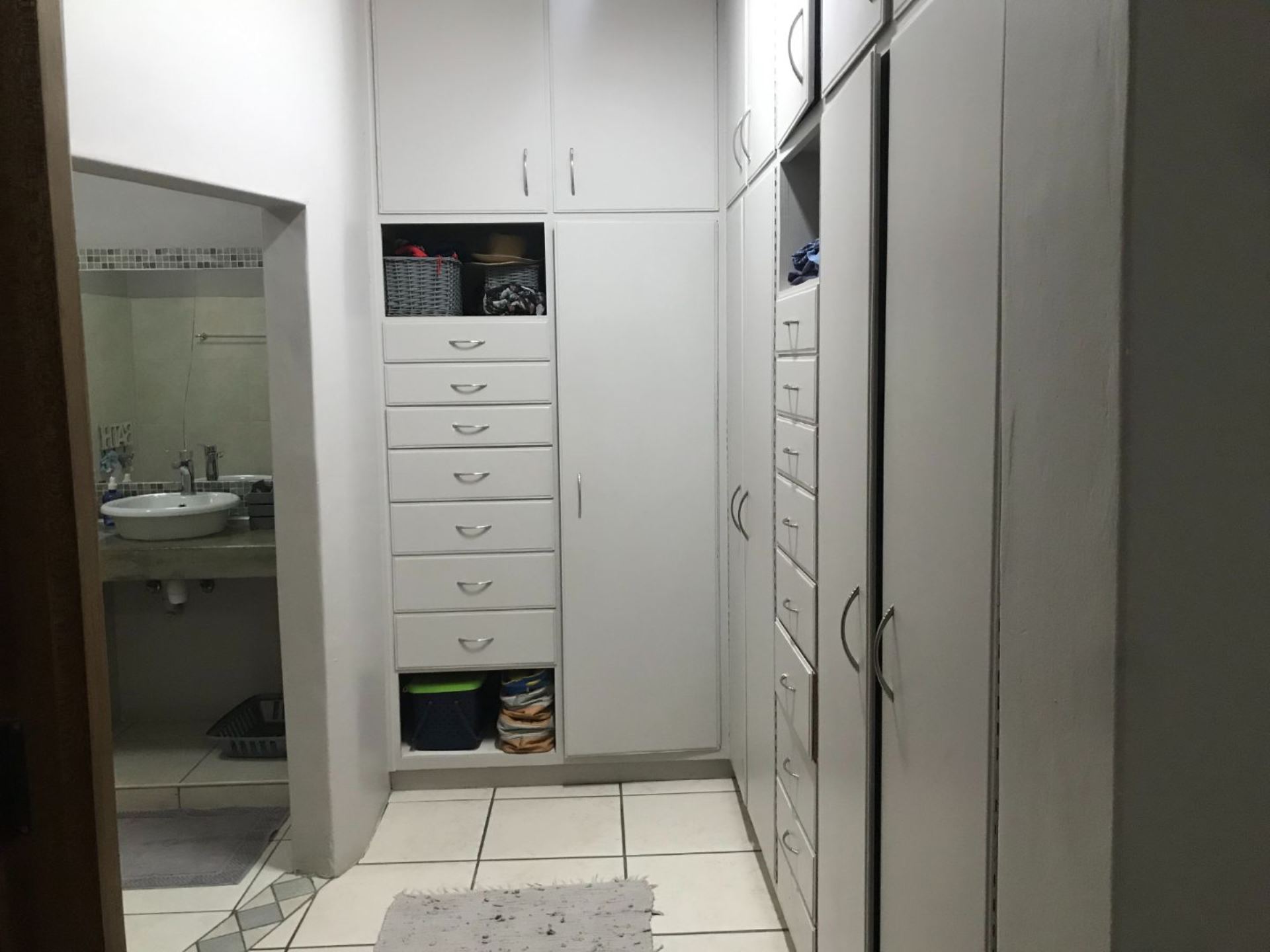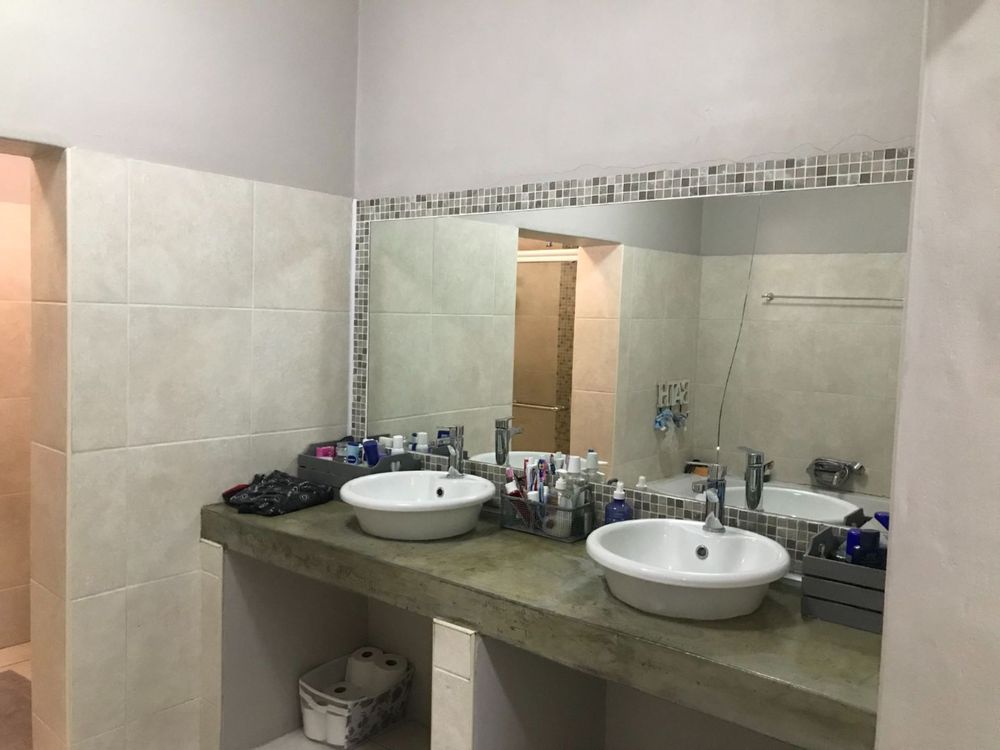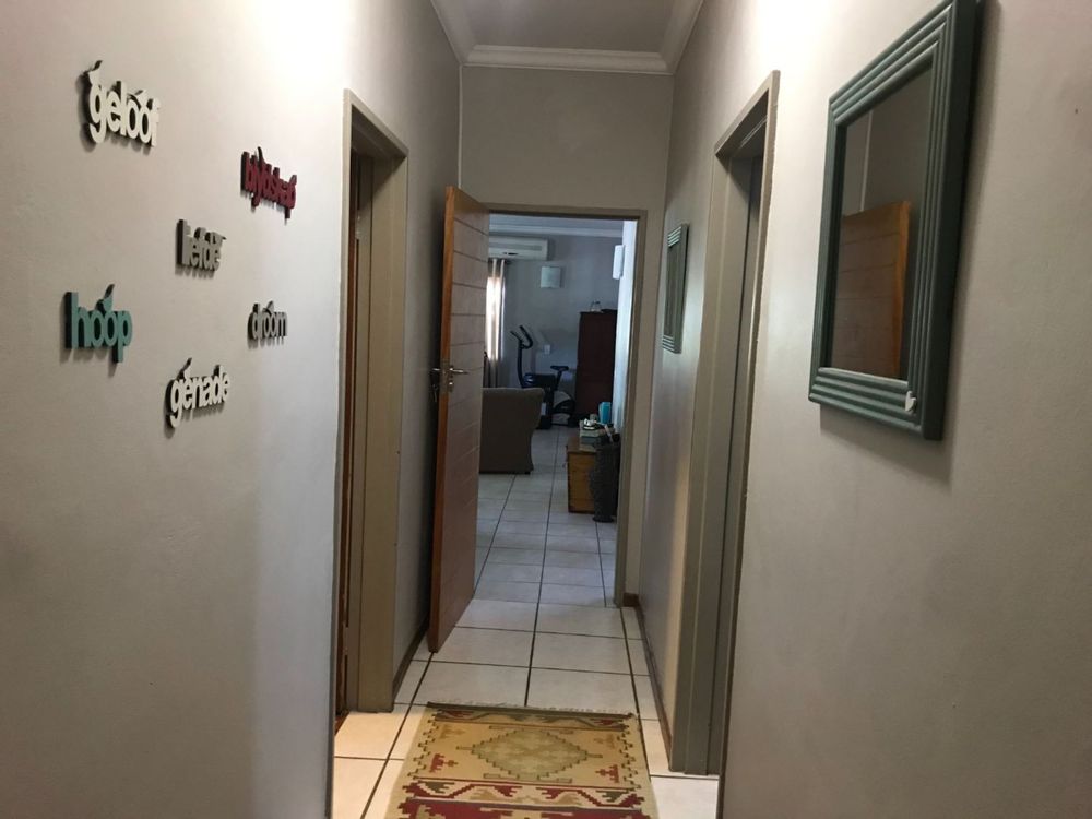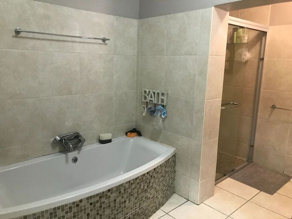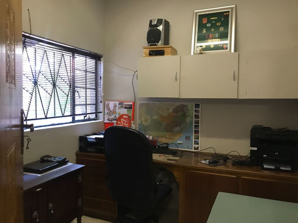 The house offers 4 bedrooms with built in cupboards and 3 bathrooms. The main bedroom has a walk-in closet with space galore and a beautiful and modern en-suit bathroom with double basin, shower, bath and toilet. The guest room is privately tucked away with its own shower, basin and toilet in the room. This house also has a comfortable office with built in shelves. The guest room and office has a door leading to a courtyard in the back.