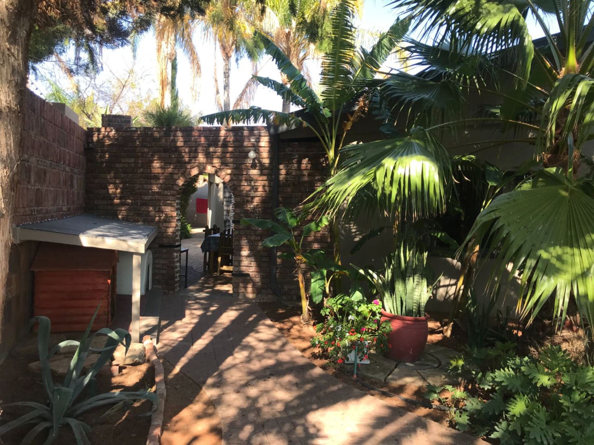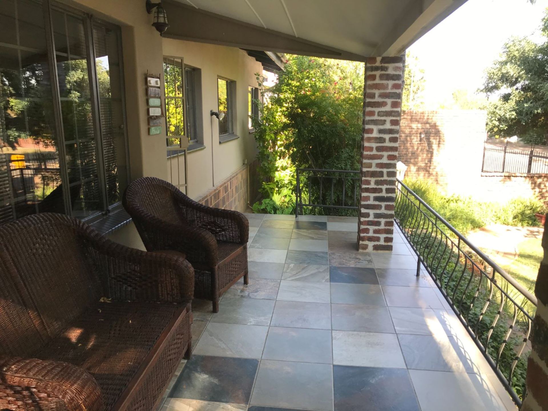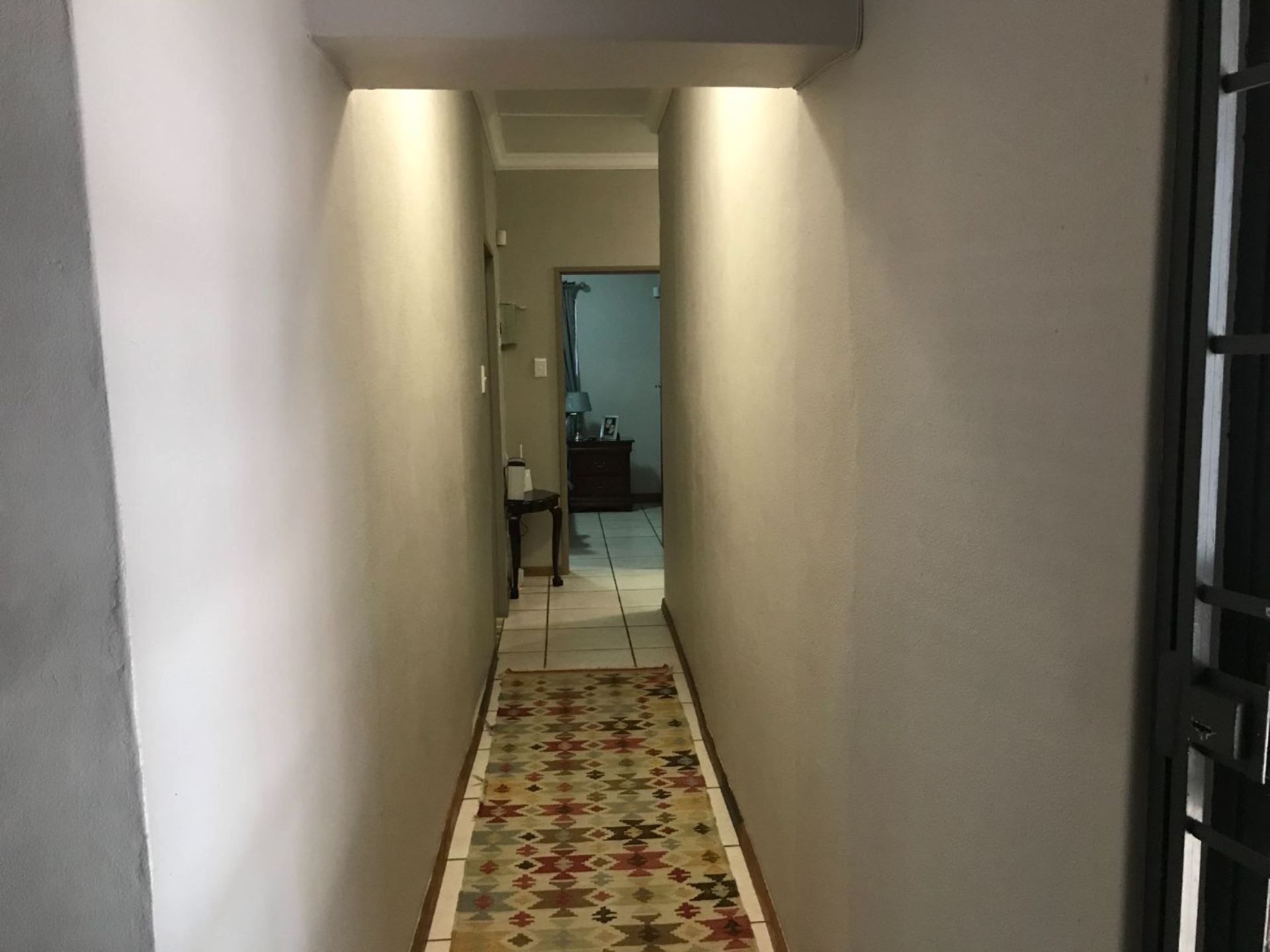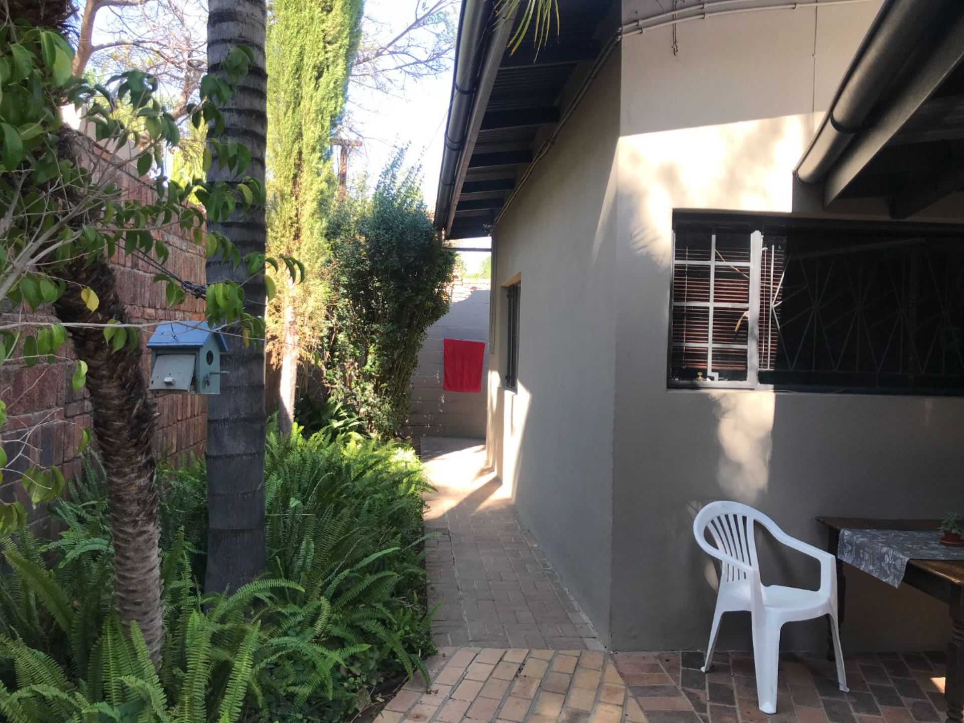 The house offers 4 bedrooms with built in cupboards and 3 bathrooms. The main bedroom has a walk-in closet with space galore and a beautiful and modern en-suit bathroom with double basin, shower, bath and toilet. The guest room is privately tucked away with its own shower, basin and toilet in the room. This house also has a comfortable office with built in shelves. The guest room and office has a door leading to a courtyard in the back.
