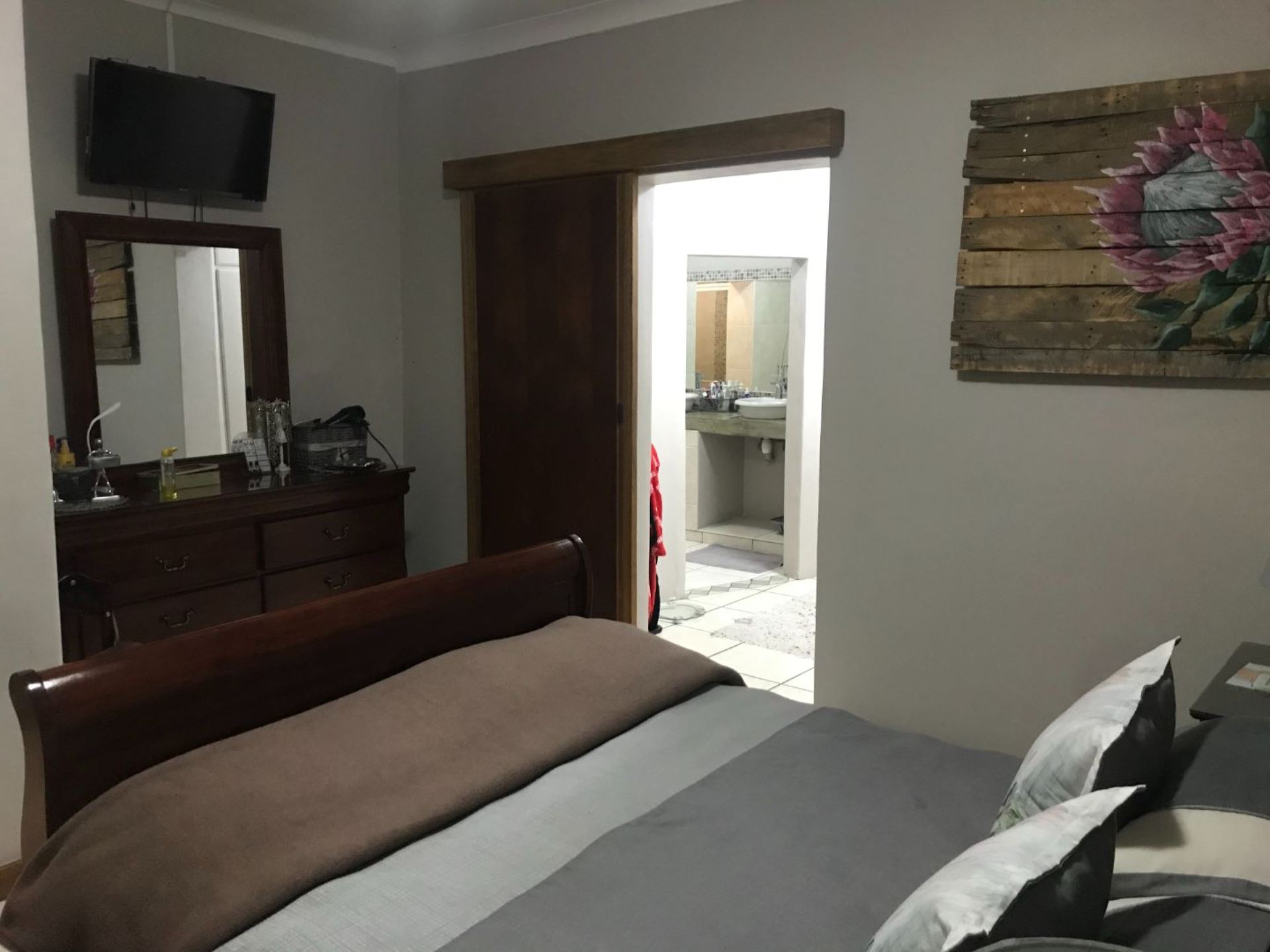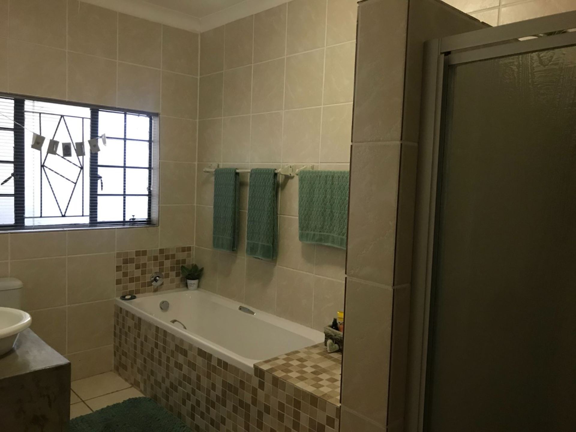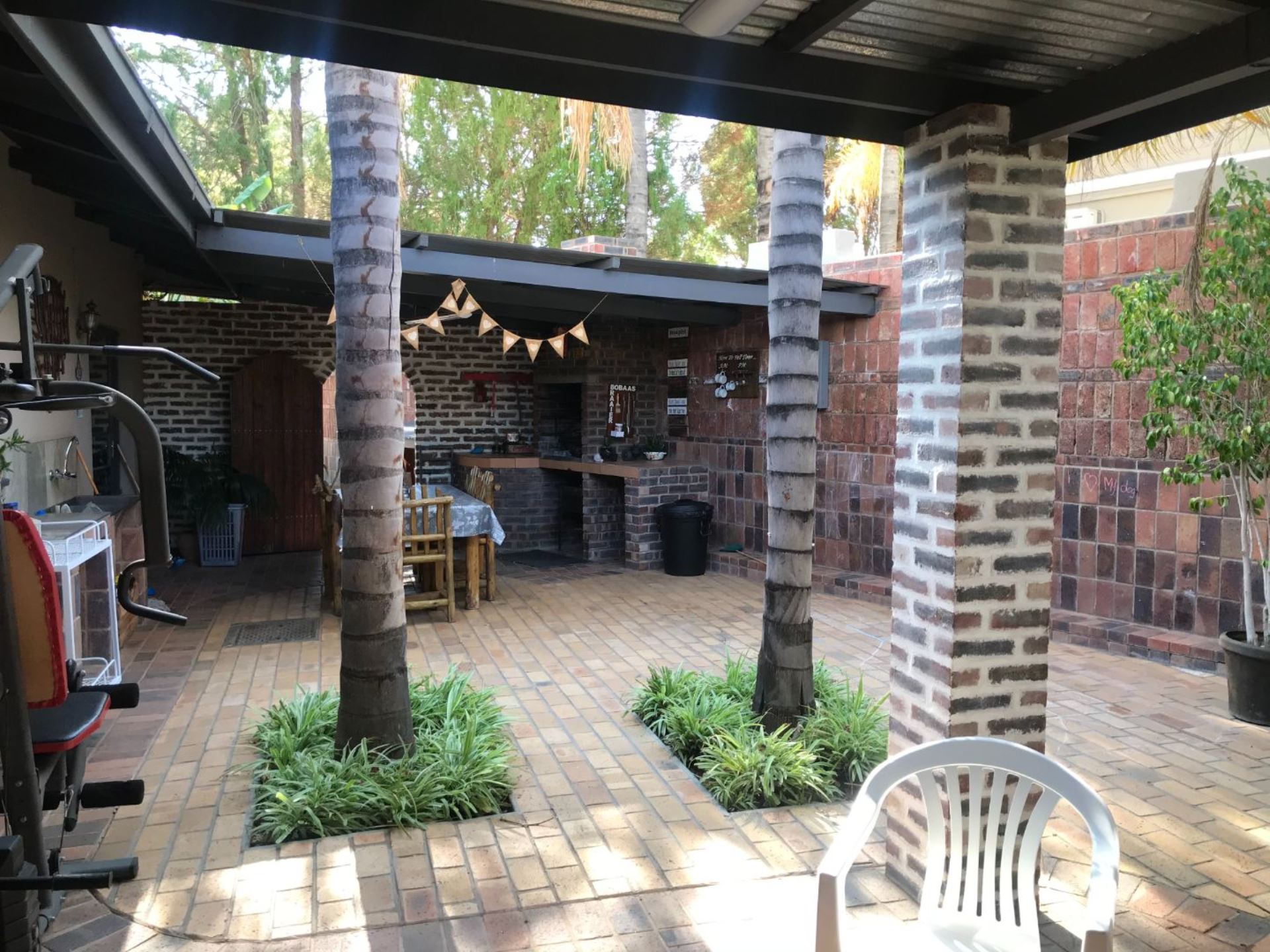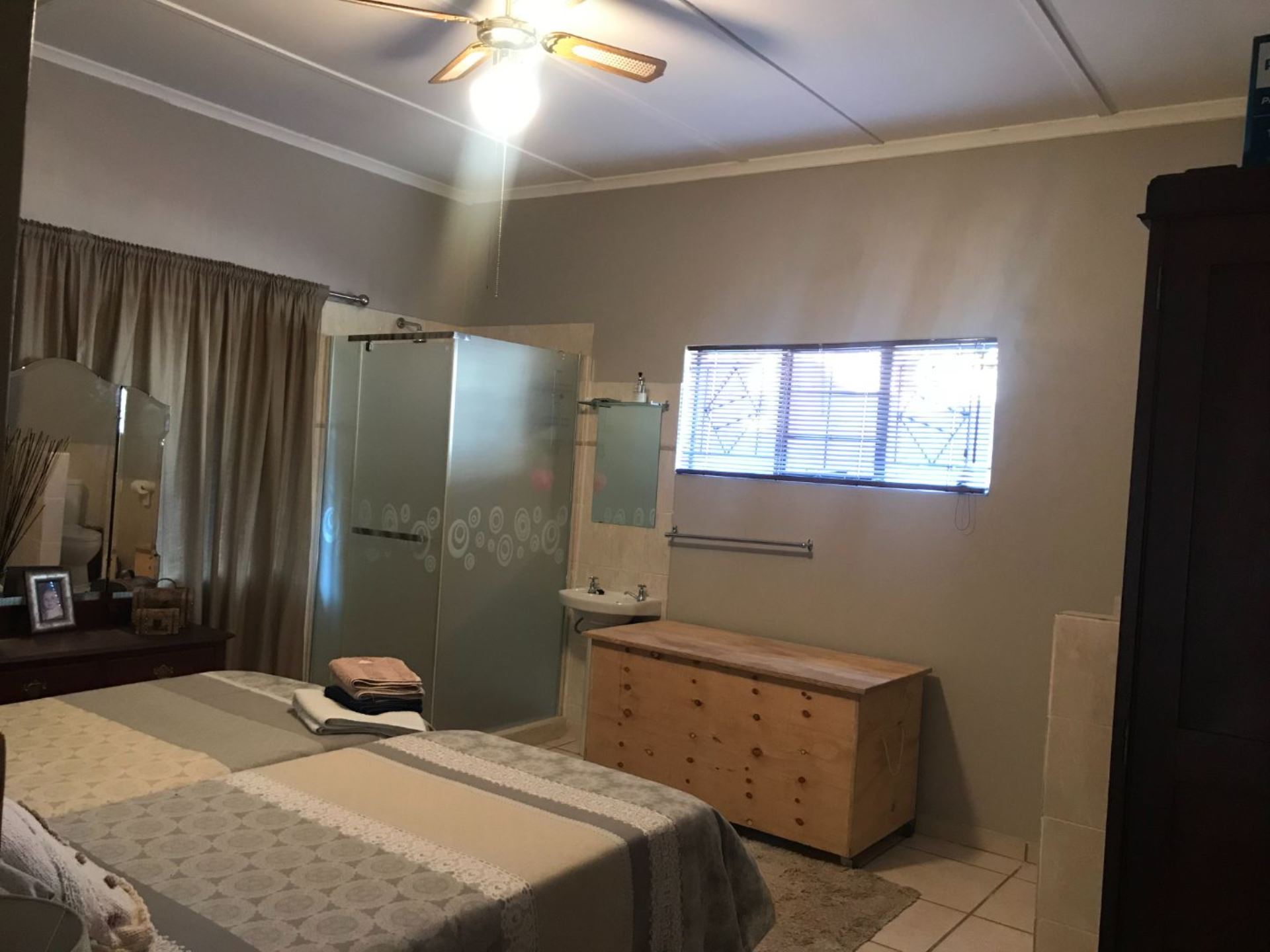 The house offers 4 bedrooms with built in cupboards and 3 bathrooms. The main bedroom has a walk-in closet with space galore and a beautiful and modern en-suit bathroom with double basin, shower, bath and toilet. The guest room is privately tucked away with its own shower, basin and toilet in the room. This house also has a comfortable office with built in shelves. The guest room and office has a door leading to a courtyard in the back.