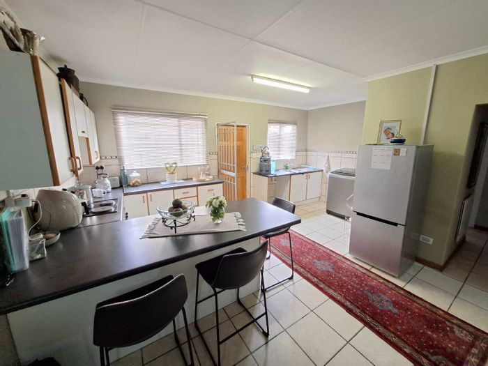 At the heart of the home is a large, fully tiled kitchen—perfect for family gatherings. It offers ample built-in cupboards, a brand-new undercounter oven with extractor fan, and a separate scullery.
