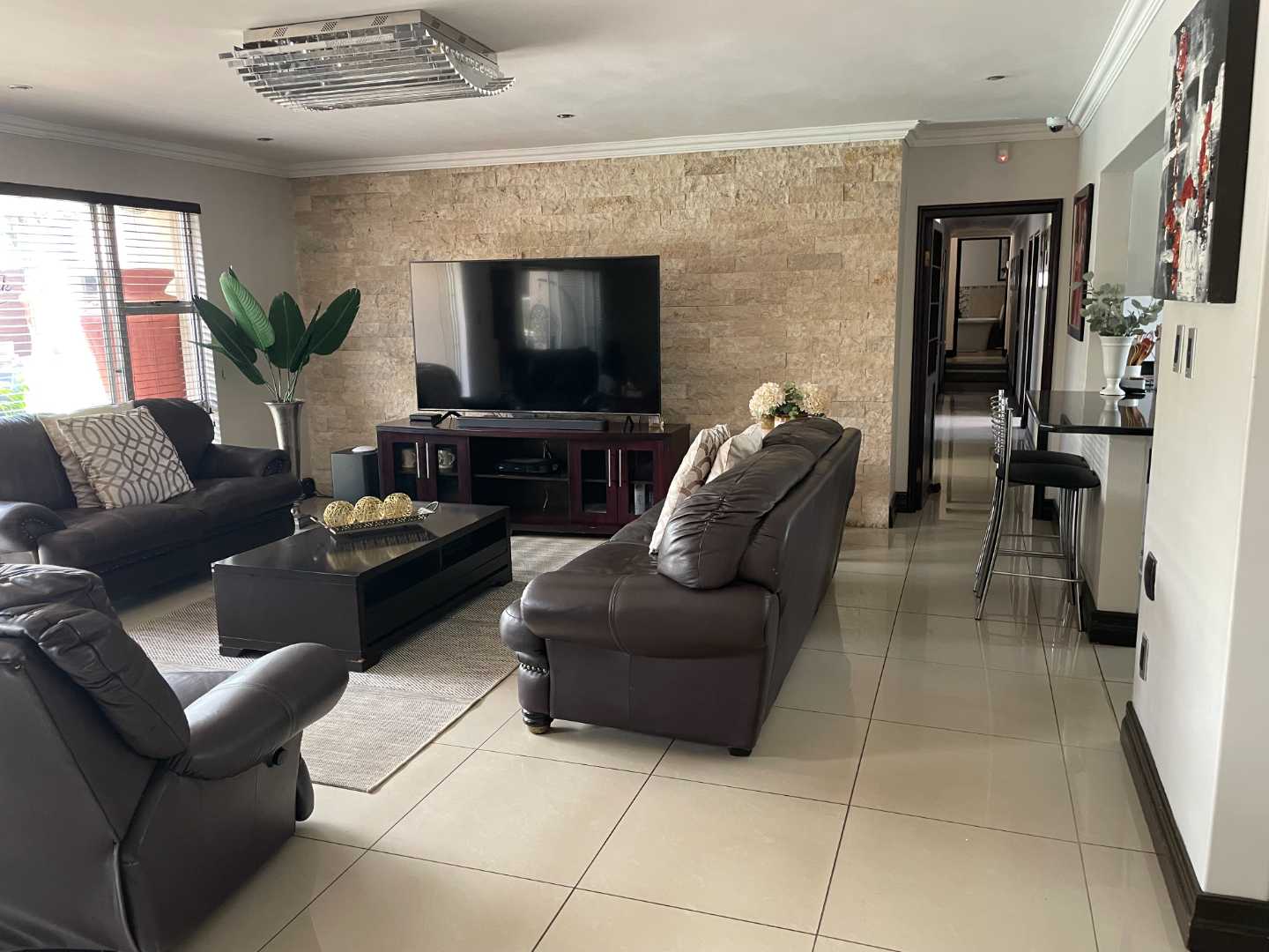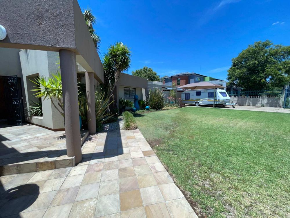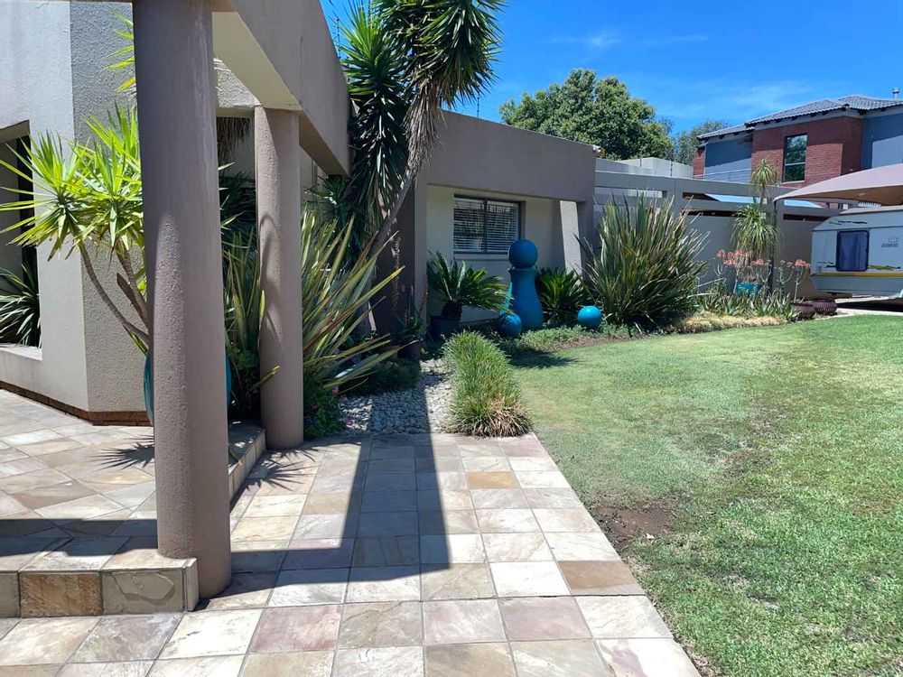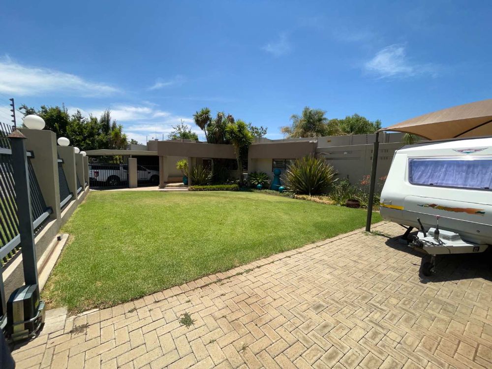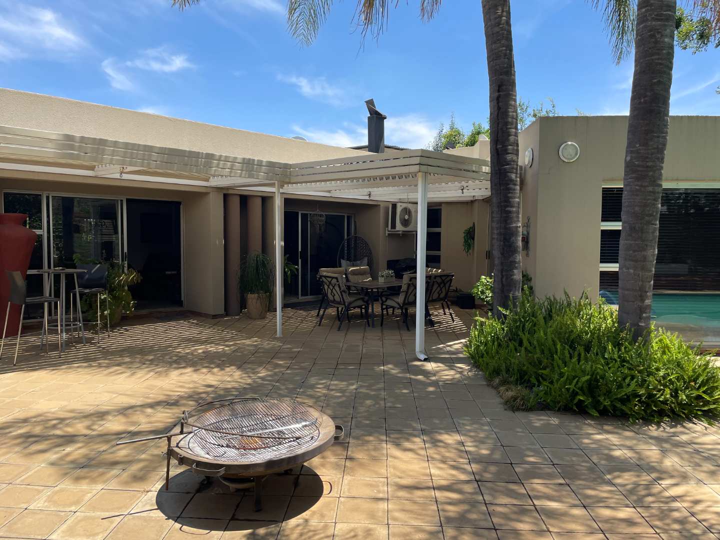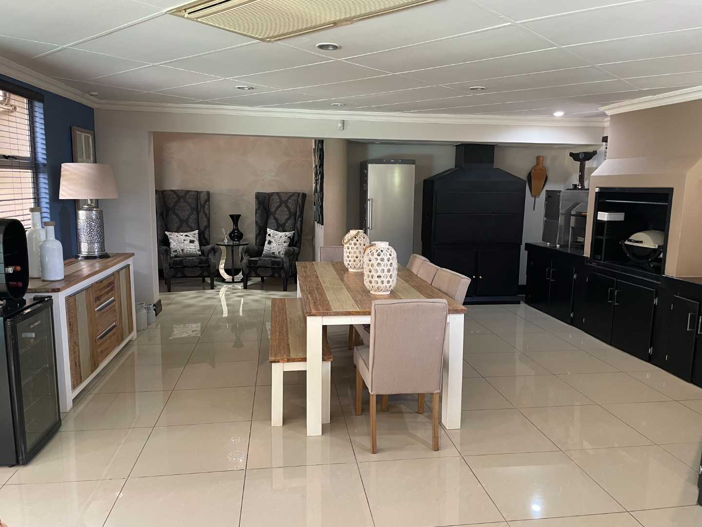 This exceptional family home, situated in the sought-after and tranquil neighborhood of Heuwelsig, offers the perfect balance of luxury and comfort. The house welcomes you with a stunning wooden front door leading into an elegant entrance hall. With its open-plan living areas, the lounge, dining room, bar, and braai area flow seamlessly together, making it ideal for entertaining and family living. These spaces open onto a picturesque garden with lush green lawns and a sparkling pool – the perfect backdrop for summer evenings and social gatherings. The property boasts four spacious bedrooms with built-in cupboards. The master bedroom features a luxurious walk-in closet, combining style and convenience. There are three fully equipped modern bathrooms that cater to every need. The kitchen is a dream for any entertainer or chef, fitted with high-quality finishes, a separate scullery, laundry room, and a spacious pantry. In addition to the main living areas, there is a versatile hobby or playroom of approximately 20 square meters, perfect for creative projects or family activities. Parking is no issue – the home includes three tiled garages with ample storage and workspace, as well as carports large enough to accommodate a caravan. This property is perfectly located in a quiet street, close to shopping centers and excellent schools, making it an ideal choice for families looking for the perfect lifestyle. This home offers the opportunity to enjoy luxury, comfort, and family living at its best – don’t miss out on this gem!