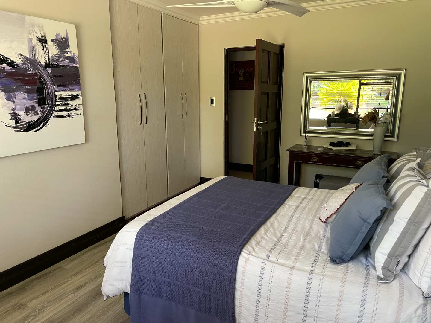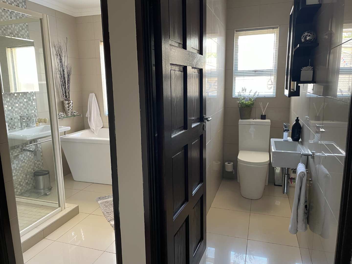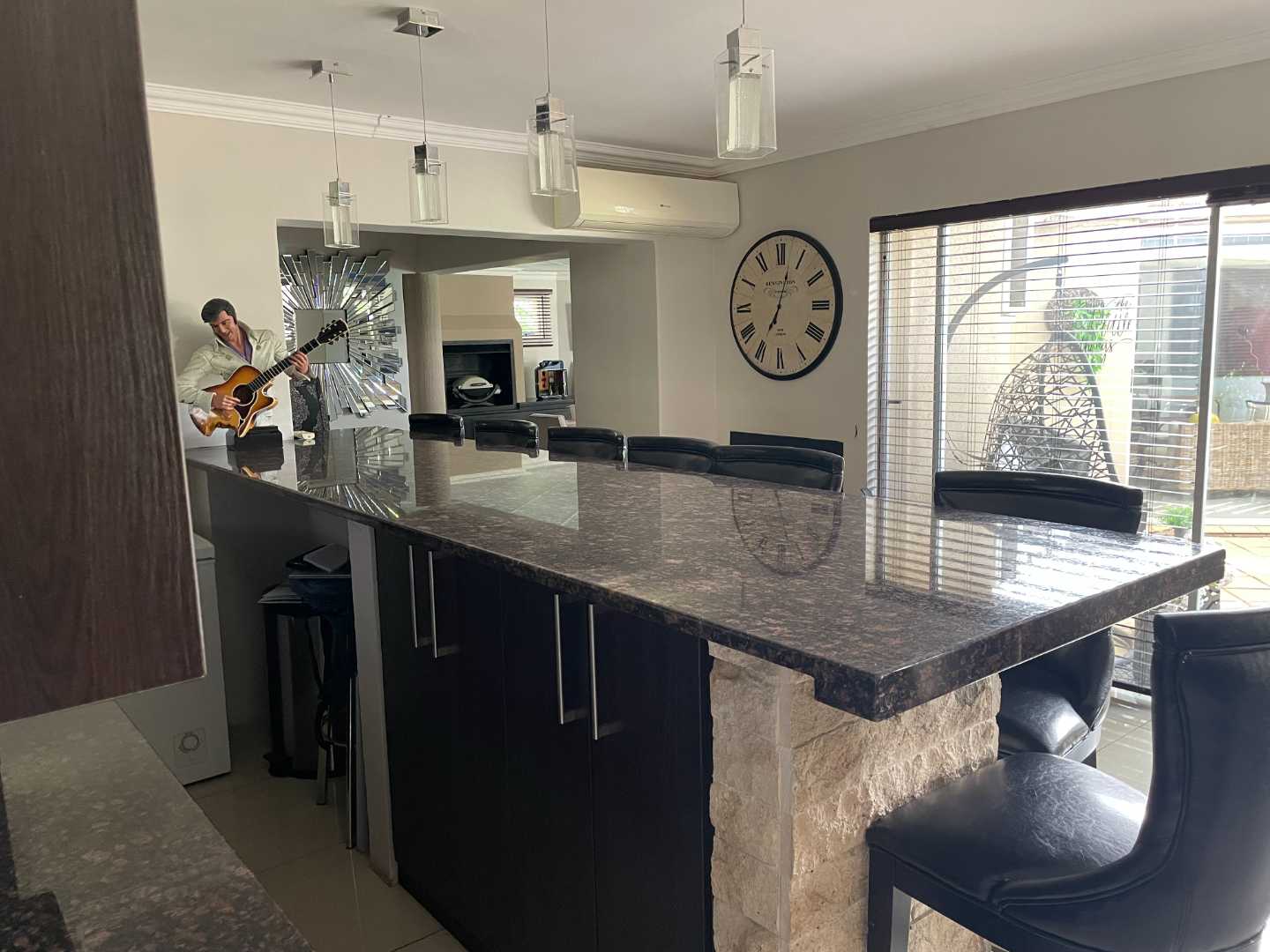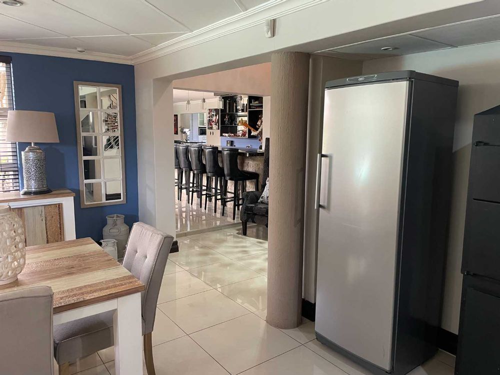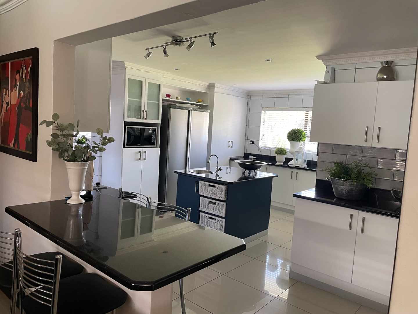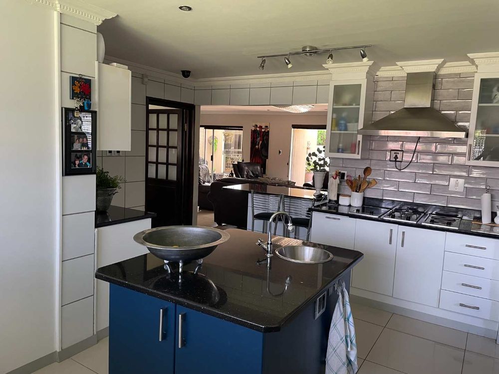 This exceptional family home, situated in the sought-after and tranquil neighborhood of Heuwelsig, offers the perfect balance of luxury and comfort. The house welcomes you with a stunning wooden front door leading into an elegant entrance hall. With its open-plan living areas, the lounge, dining room, bar, and braai area flow seamlessly together, making it ideal for entertaining and family living. These spaces open onto a picturesque garden with lush green lawns and a sparkling pool – the perfect backdrop for summer evenings and social gatherings. The property boasts four spacious bedrooms with built-in cupboards. The master bedroom features a luxurious walk-in closet, combining style and convenience. There are three fully equipped modern bathrooms that cater to every need. The kitchen is a dream for any entertainer or chef, fitted with high-quality finishes, a separate scullery, laundry room, and a spacious pantry. In addition to the main living areas, there is a versatile hobby or playroom of approximately 20 square meters, perfect for creative projects or family activities. Parking is no issue – the home includes three tiled garages with ample storage and workspace, as well as carports large enough to accommodate a caravan. This property is perfectly located in a quiet street, close to shopping centers and excellent schools, making it an ideal choice for families looking for the perfect lifestyle. This home offers the opportunity to enjoy luxury, comfort, and family living at its best – don’t miss out on this gem!
