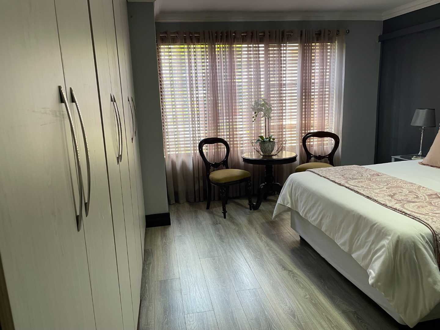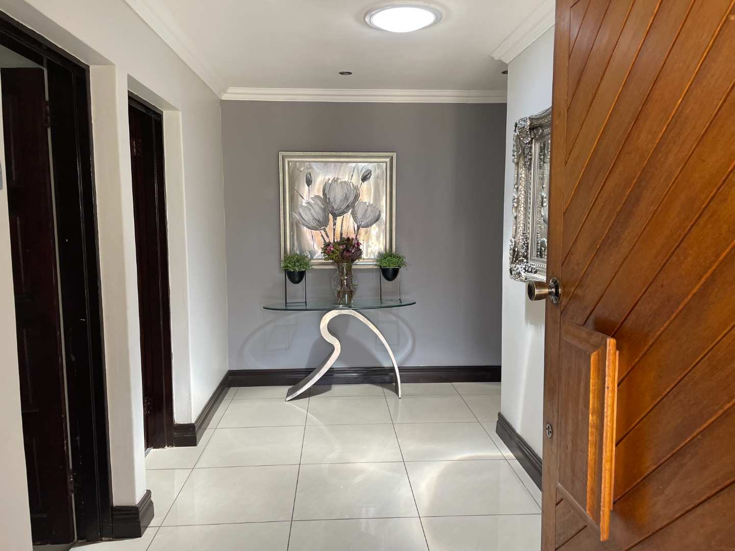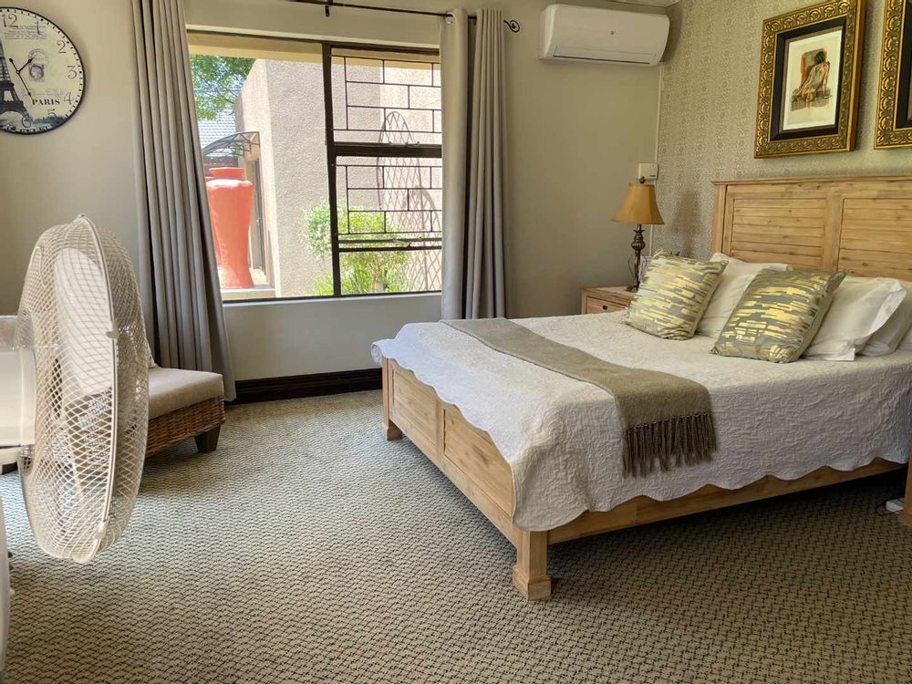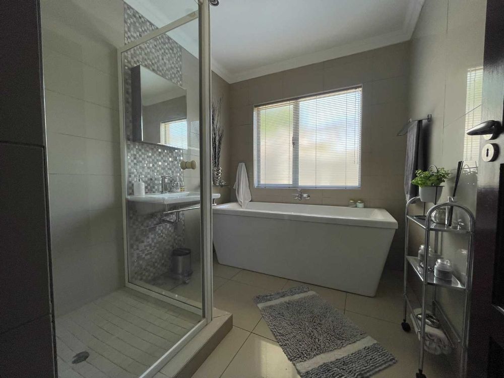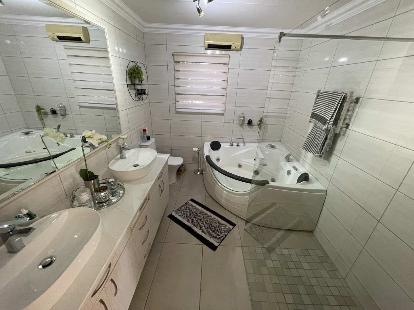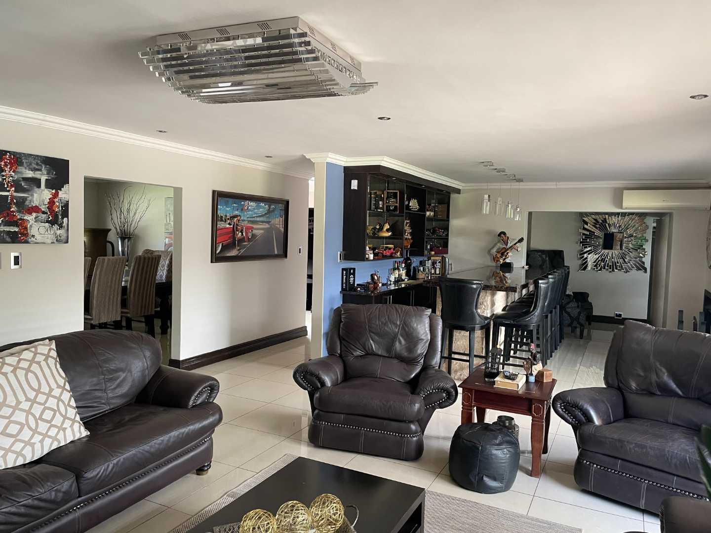 This exceptional family home, situated in the sought-after and tranquil neighborhood of Heuwelsig, offers the perfect balance of luxury and comfort. The house welcomes you with a stunning wooden front door leading into an elegant entrance hall. With its open-plan living areas, the lounge, dining room, bar, and braai area flow seamlessly together, making it ideal for entertaining and family living. These spaces open onto a picturesque garden with lush green lawns and a sparkling pool – the perfect backdrop for summer evenings and social gatherings. The property boasts four spacious bedrooms with built-in cupboards. The master bedroom features a luxurious walk-in closet, combining style and convenience. There are three fully equipped modern bathrooms that cater to every need. The kitchen is a dream for any entertainer or chef, fitted with high-quality finishes, a separate scullery, laundry room, and a spacious pantry. In addition to the main living areas, there is a versatile hobby or playroom of approximately 20 square meters, perfect for creative projects or family activities. Parking is no issue – the home includes three tiled garages with ample storage and workspace, as well as carports large enough to accommodate a caravan. This property is perfectly located in a quiet street, close to shopping centers and excellent schools, making it an ideal choice for families looking for the perfect lifestyle. This home offers the opportunity to enjoy luxury, comfort, and family living at its best – don’t miss out on this gem!
