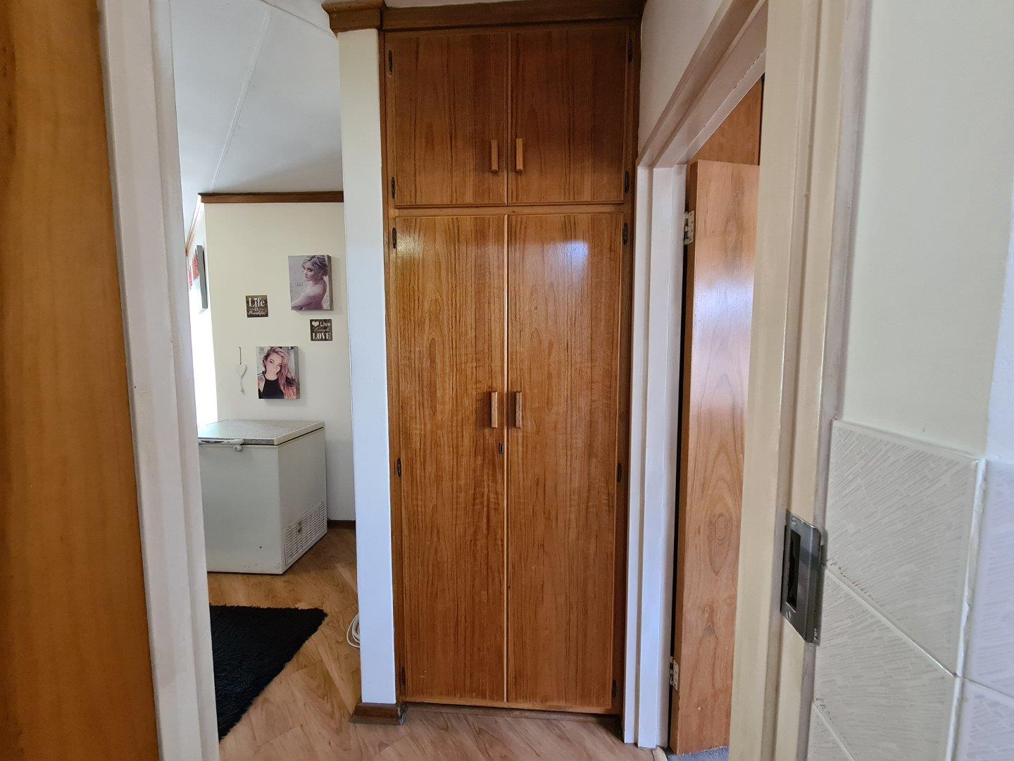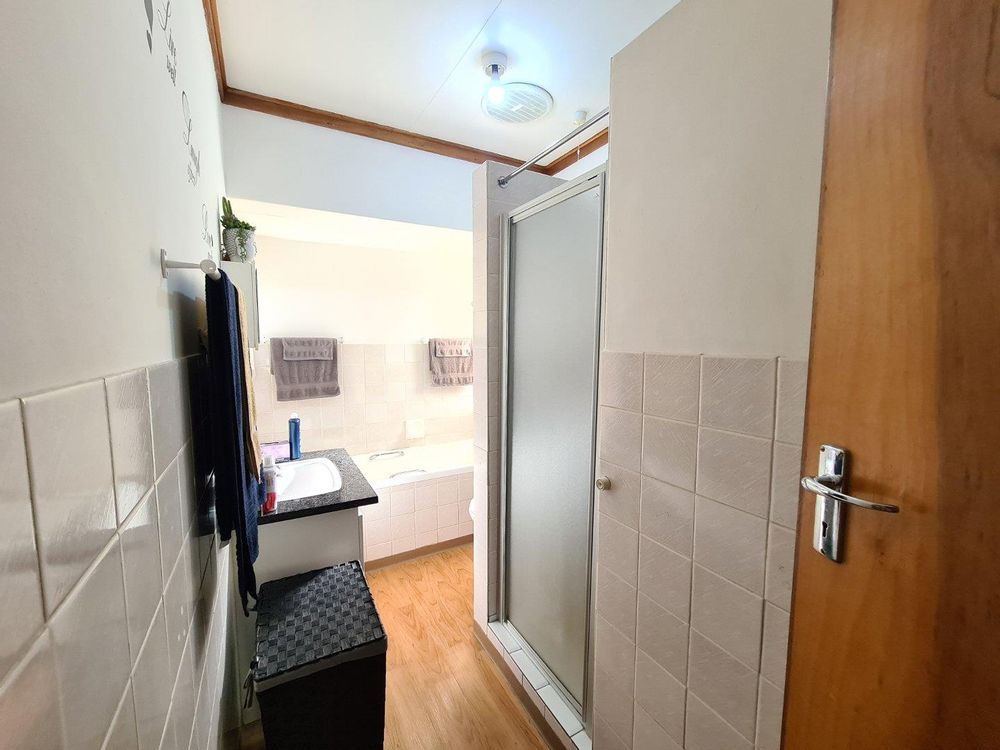 Step into the air-conditioned, open-plan living and dining area, where natural light flows seamlessly through the space, creating a warm and inviting atmosphere. The kitchen is equipped with ample built-in cupboards, a built-in stove, oven, and an extractor fan, catering to all your culinary needs.