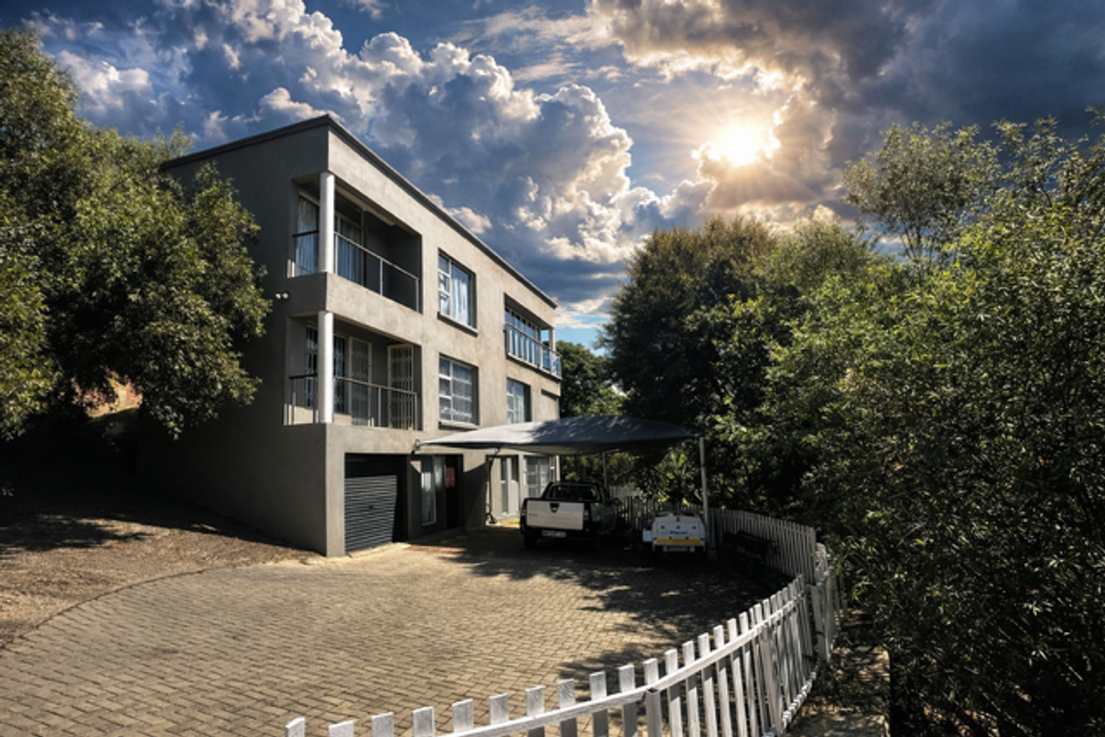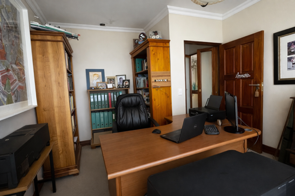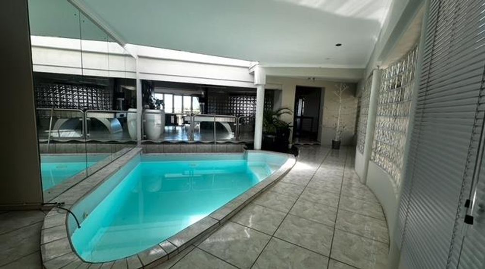 The entertainment area includes a braai room that opens onto a wooden deck. Adjacent to this space you will find an indoor swimming pool with a jacuzzi and pool room, creating the perfect environment for relaxation and entertaining throughout the year.
