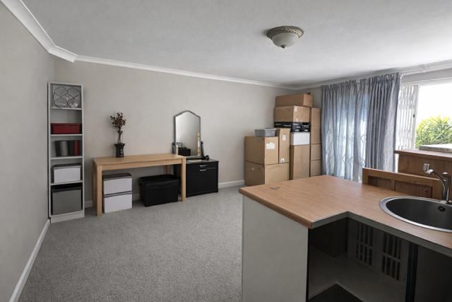 The open-plan kitchen is fitted with quality ELBA gas and electric appliances, elegant Rhodesian granite countertops, and a separate scullery for added convenience.