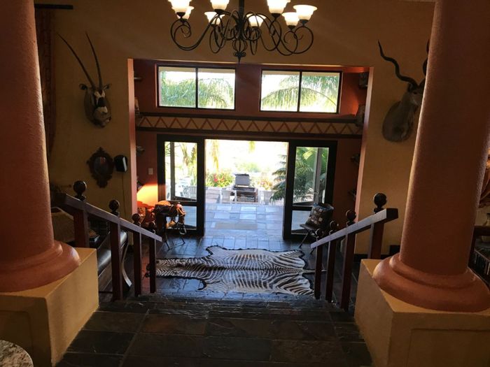 Luxurious mansion on Orange River with agricultural land, spacious rooms, pool, guest flat, and stunning views. Perfect for entertaining.