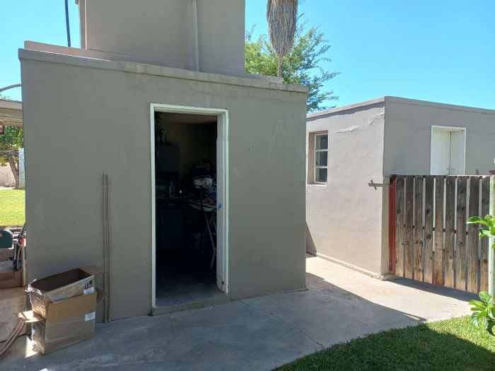 Property with two dwellings, large erf, borehole, and rental income potential in Kanoneiland. Ideal for gardening and expansion.