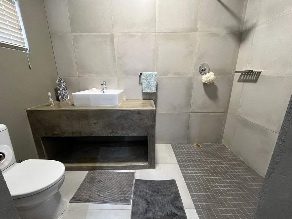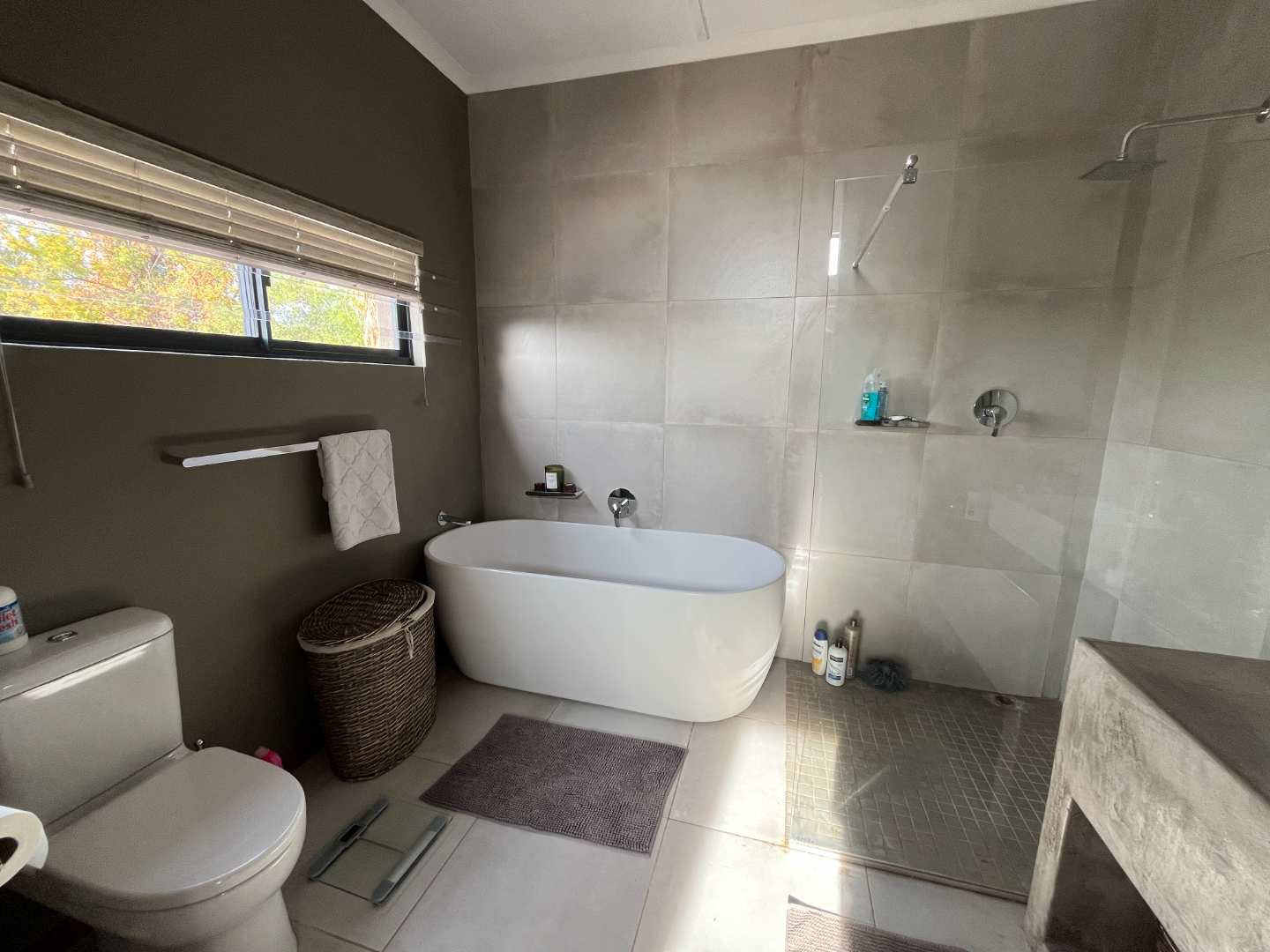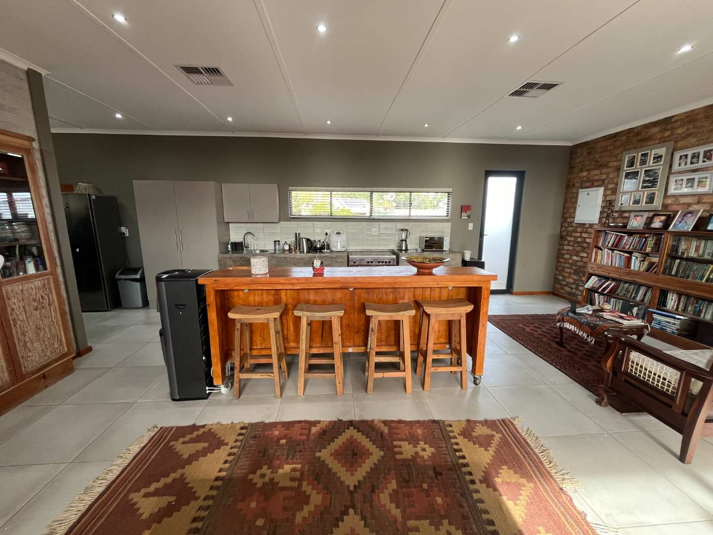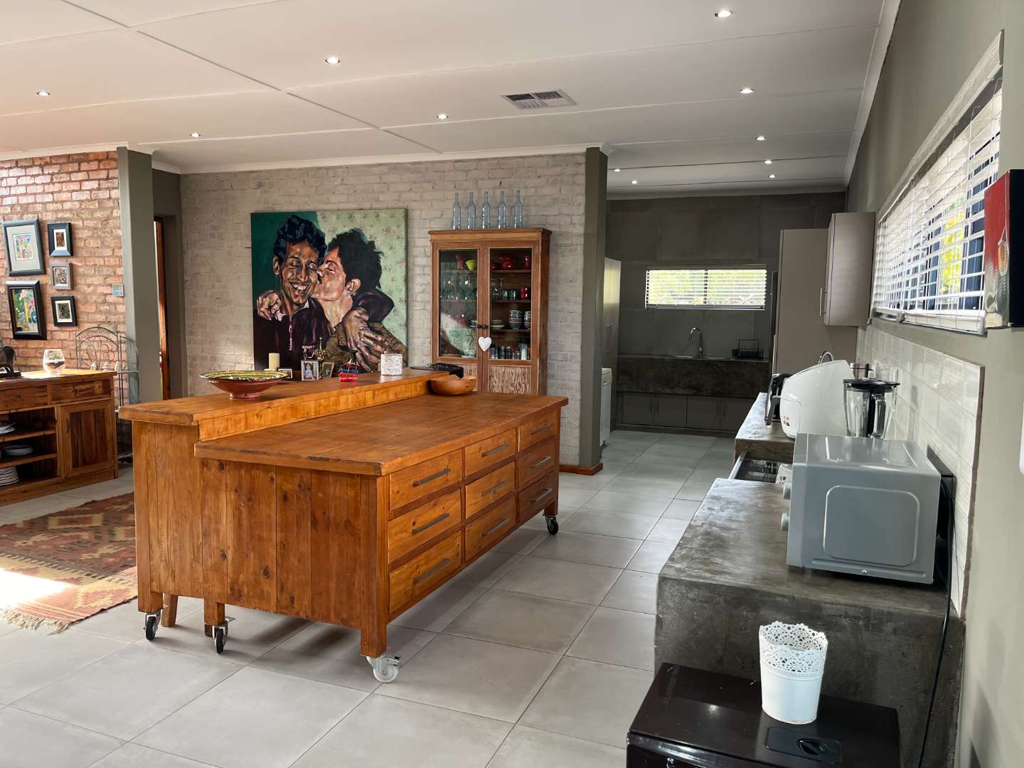 The home features modern finishes and an ideal layout for entertaining. The spacious, open-plan living areas and kitchen flow seamlessly onto a lovely stoep — the perfect setting for gatherings with family and friends. The kitchen is stylish and functional, ideal for cooking up a storm while staying connected with your guests. The separate scullery is spacious complete with built-in cupboards, washing- and dishwasher connection.