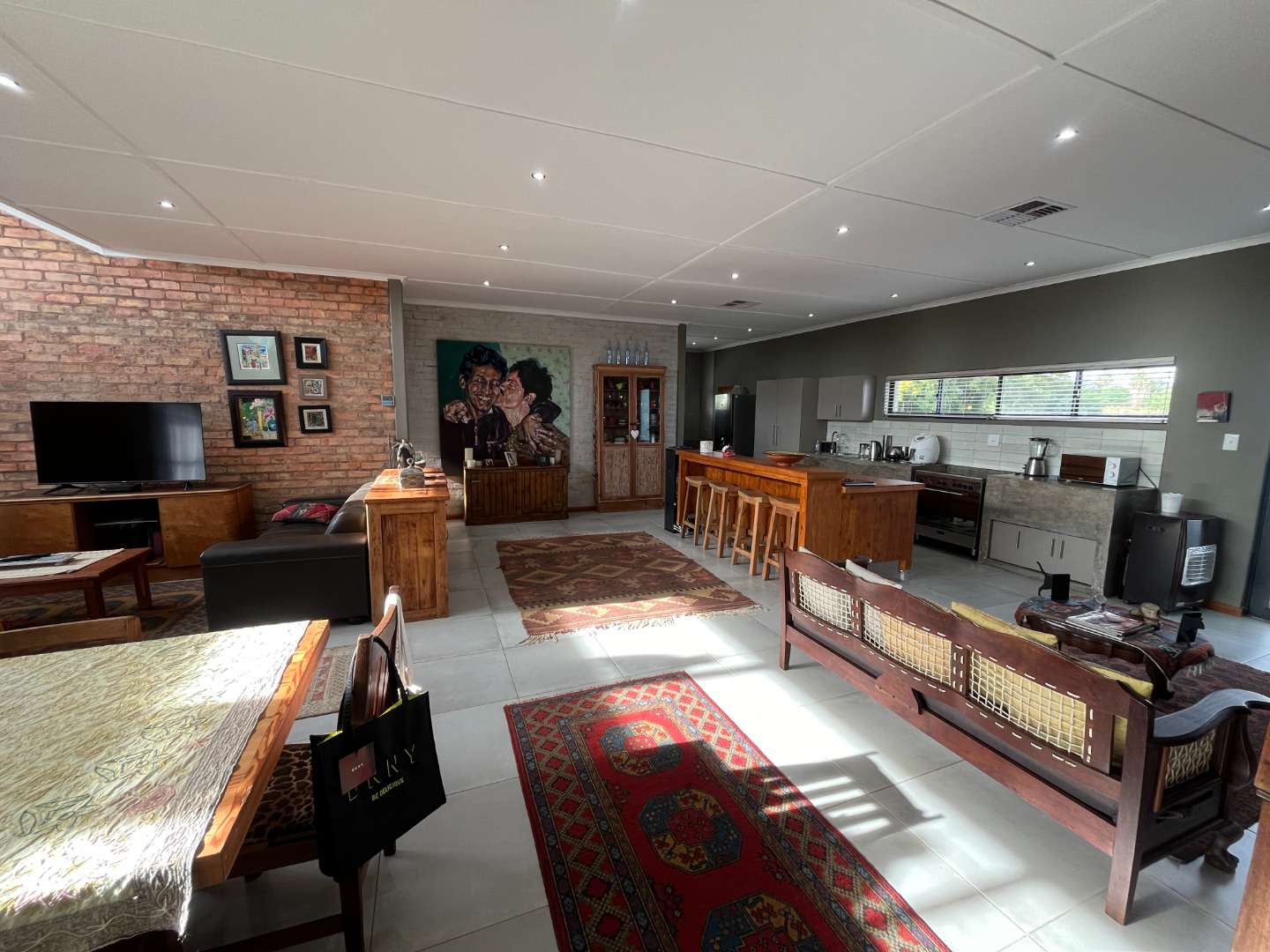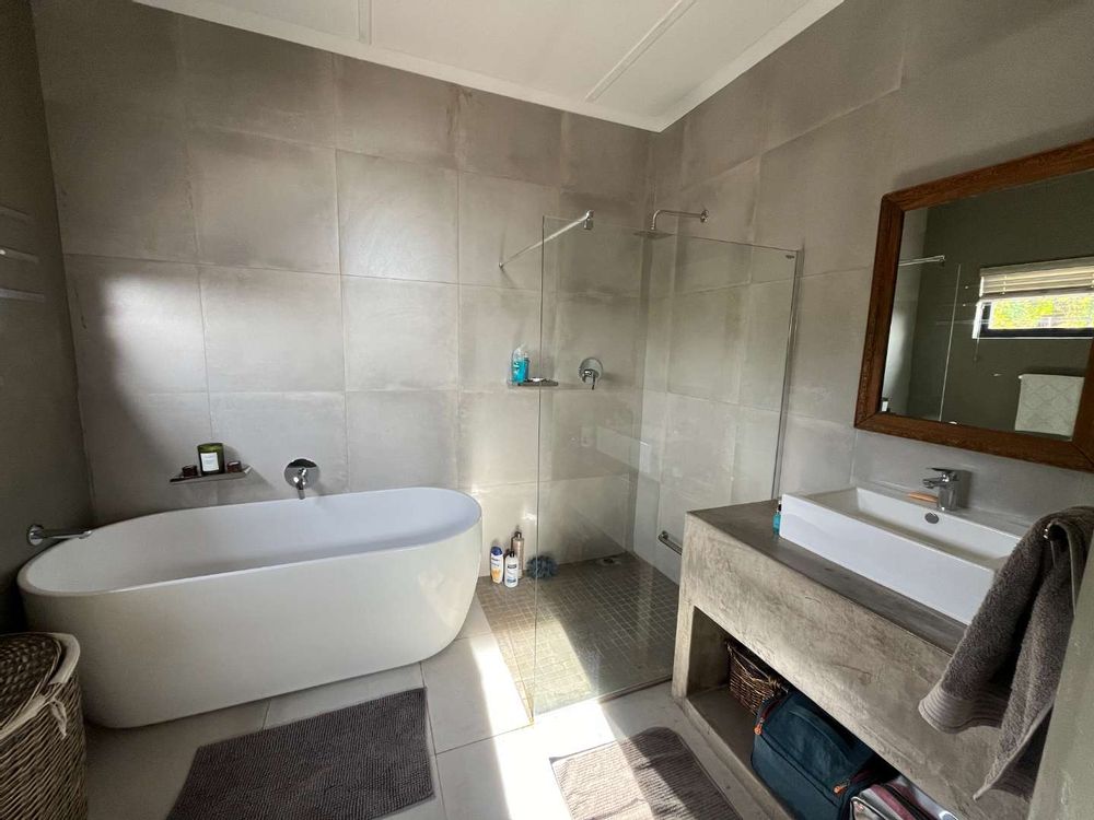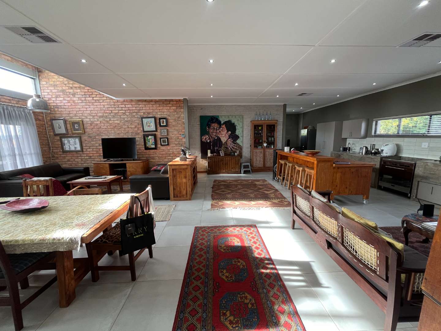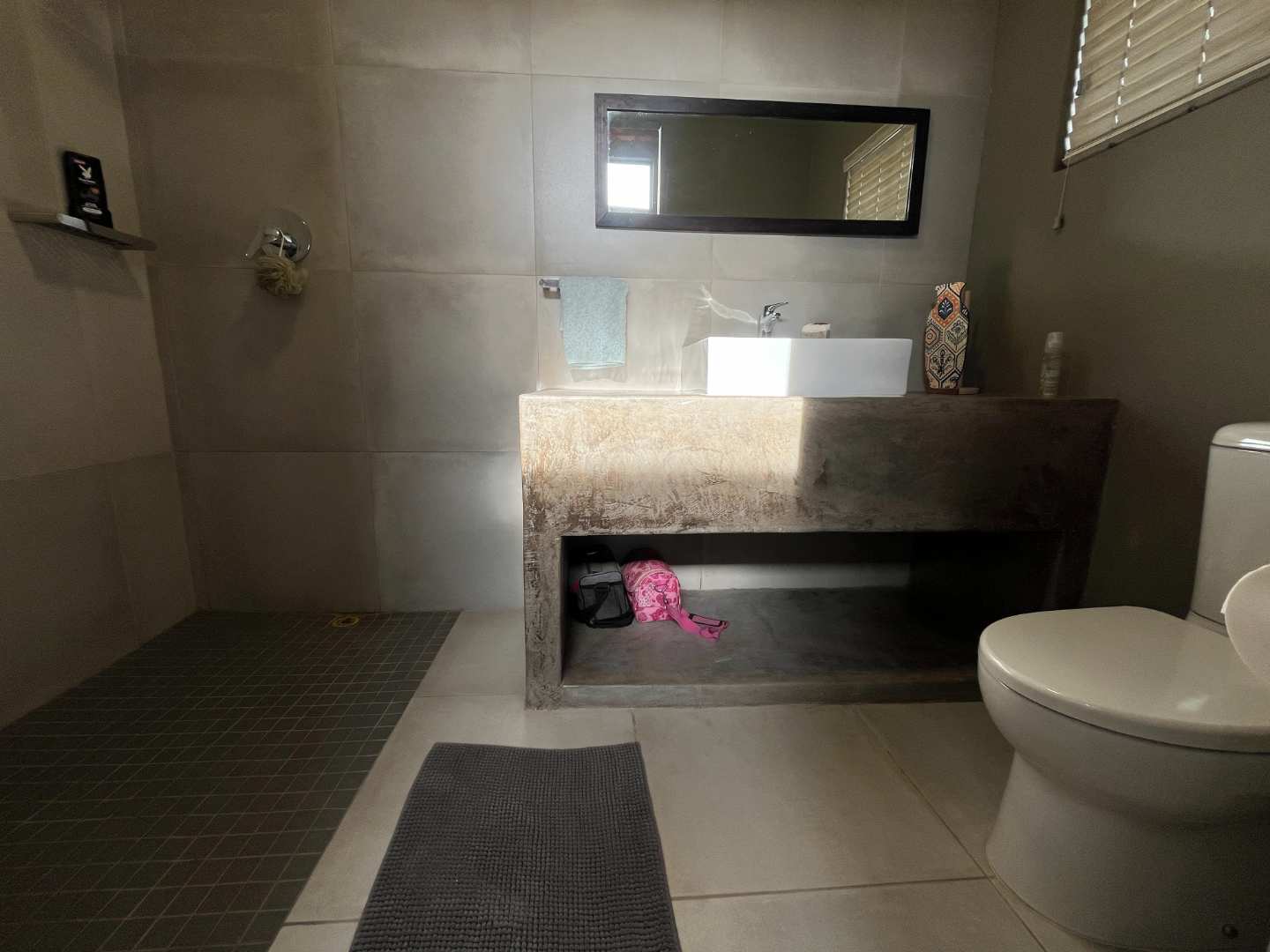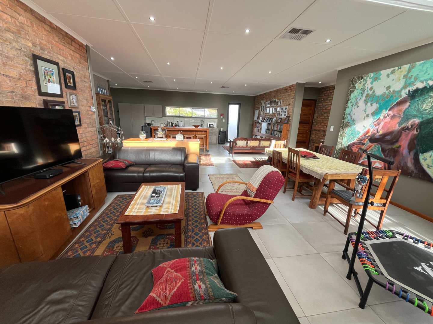 The home features modern finishes and an ideal layout for entertaining. The spacious, open-plan living areas and kitchen flow seamlessly onto a lovely stoep — the perfect setting for gatherings with family and friends. The kitchen is stylish and functional, ideal for cooking up a storm while staying connected with your guests. The separate scullery is spacious complete with built-in cupboards, washing- and dishwasher connection.