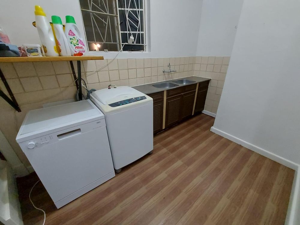 > Big kitchen fitted with enough storage and separate laundry/washing area