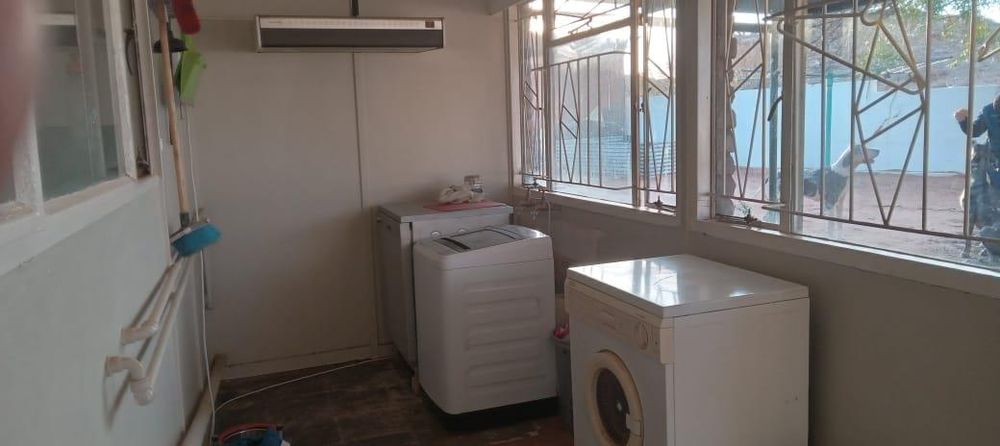 The kitchen boasts plenty of storage space, complemented by a separate laundry room for added practicality.