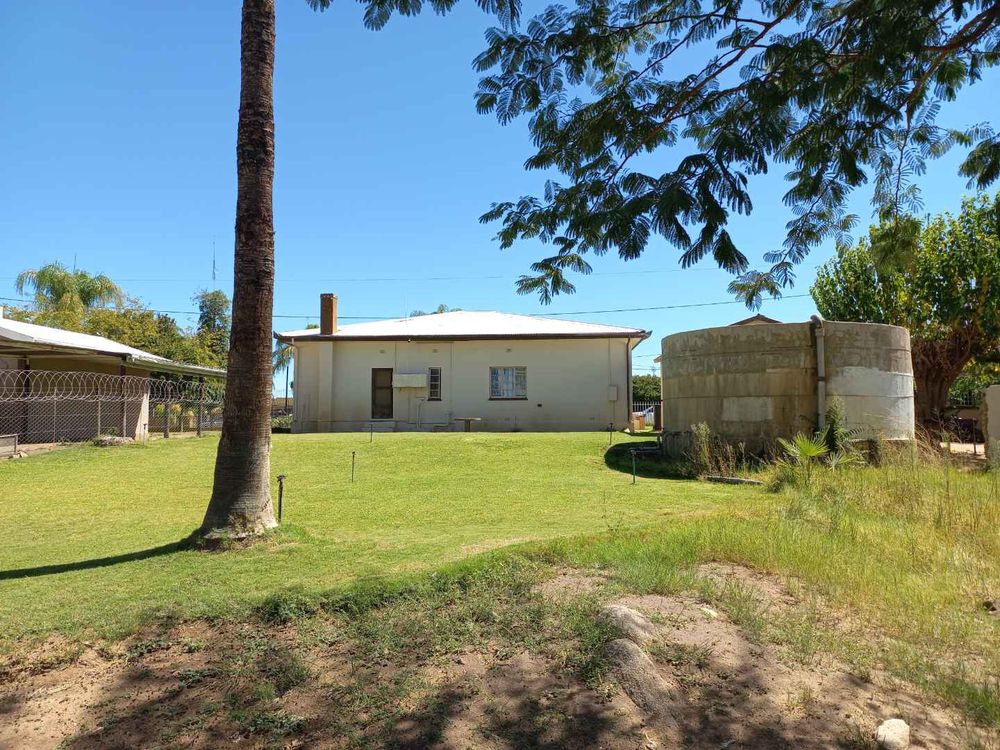 The first dwelling is a 3-bedroom house with a bathroom, dining room, family room and a lovely stoep. Real wooden floors and split units in the house. The second dwelling has 4 rooms and a kitchen. A single garage, few outside buildings and bathrooms. The garden has irrigation (manual) and there is more than enough space for planting of vegetables and fruit trees, or even to expand the buildings.