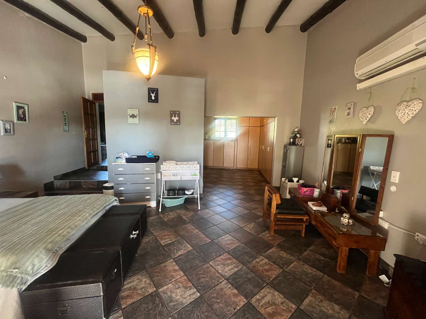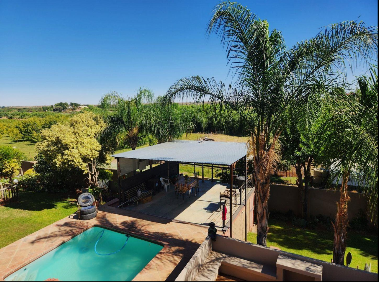 This spectacular, picture-perfect property is situated on the banks of the Orange river with a 2 hectare agricultural land that hosts Pecan nut trees, lucerne and lots of space for sheep sheds.