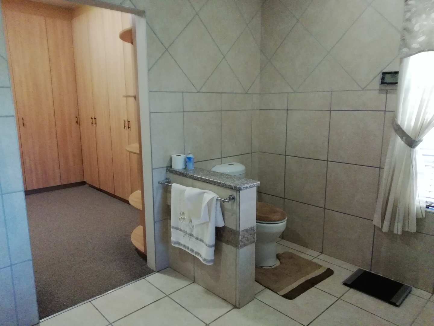 This remarkable property boasts 5 en-suit bedrooms. 2 Of the bedrooms are separate and ideal for guests. The other 3 en-suit bedrooms have a huge private pyjama lounge offering an additional space for relaxation and leisurely moments. The master bedroom has a large walk-in closet and sliding doors to the entertainment patio with breathtaking views. Guest toilet with basin.