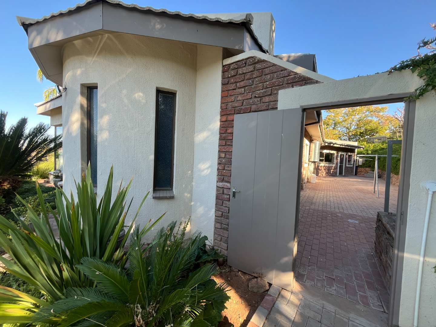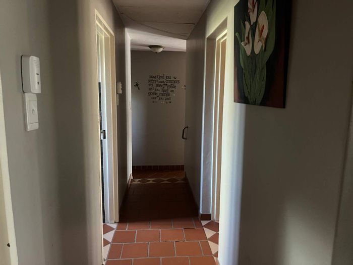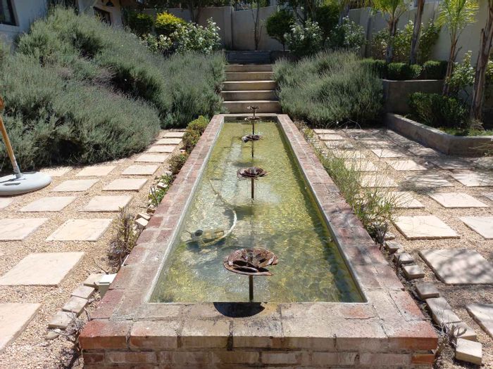 Outside, enjoy a lush, irrigated garden, an electric entrance gate, and a double garage (fits 3 cars) with a storeroom. The garage roof is a reinforced cement slab, approved for building a ±120 sqm flat, ideal for extended family, rental income, or a work-from-home setup. Some extra features are the luxury of canal water, tank with pressure pump for municipal back-up water and a 10kw solar system with 2 x 5 kw batteries, 8kw inverter and 12 solar panels and central water cooler and domestic toilet.