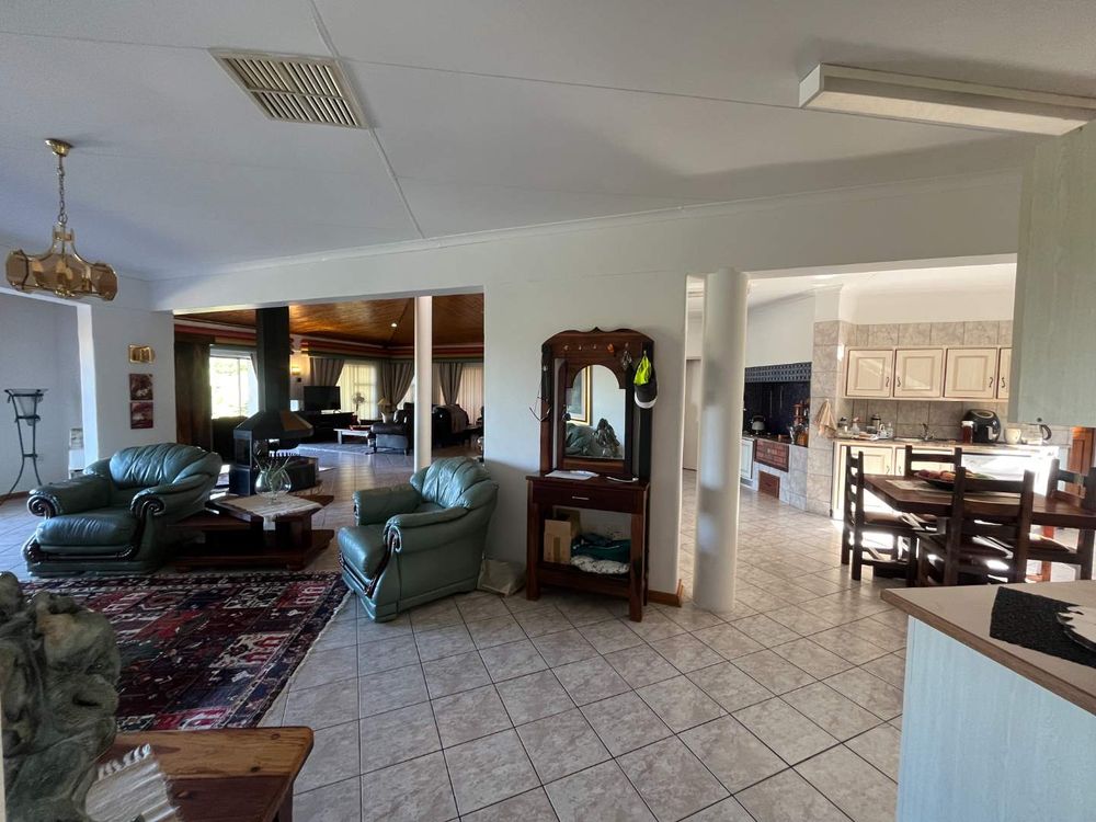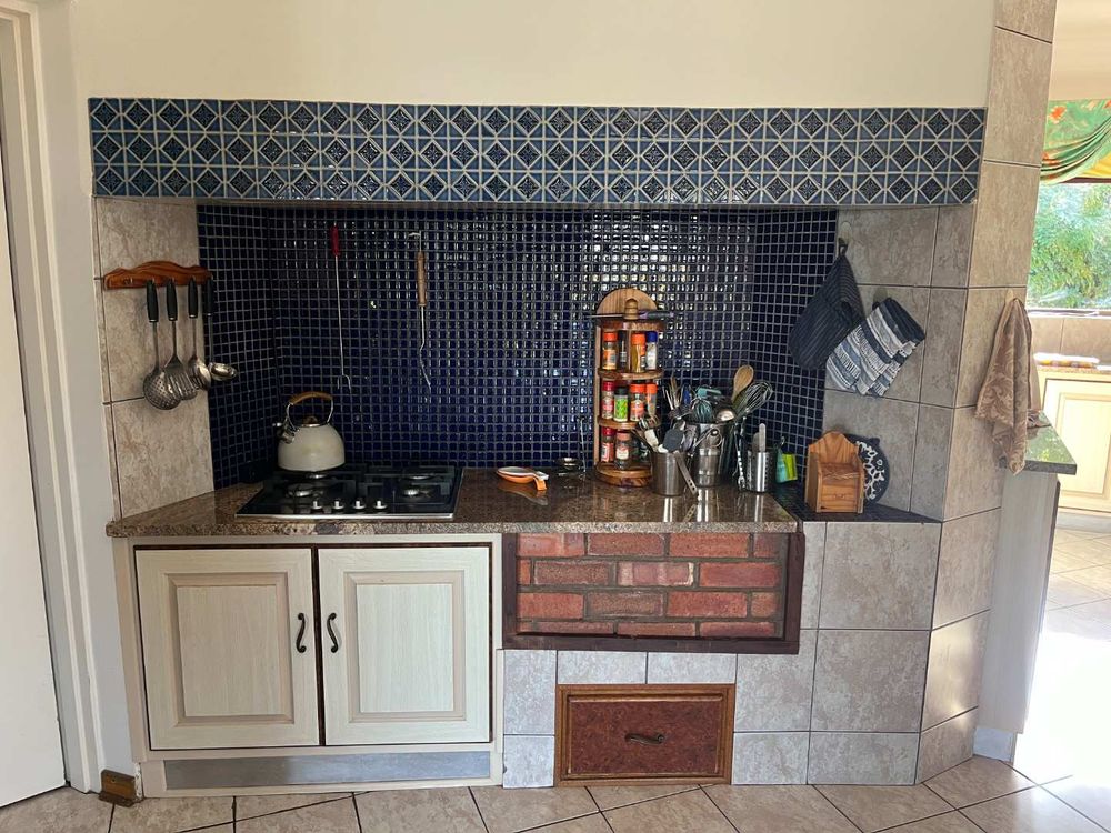 Step inside to expansive, free-flowing living areas including a lounge, dining room, family room, and a modern kitchen with gas hob, double eye-level oven, walk-in pantry and scullery/laundry for added convenience. Large windows and sliding doors open onto a patio with built-in braai – perfect for entertaining while enjoying spectacular views.