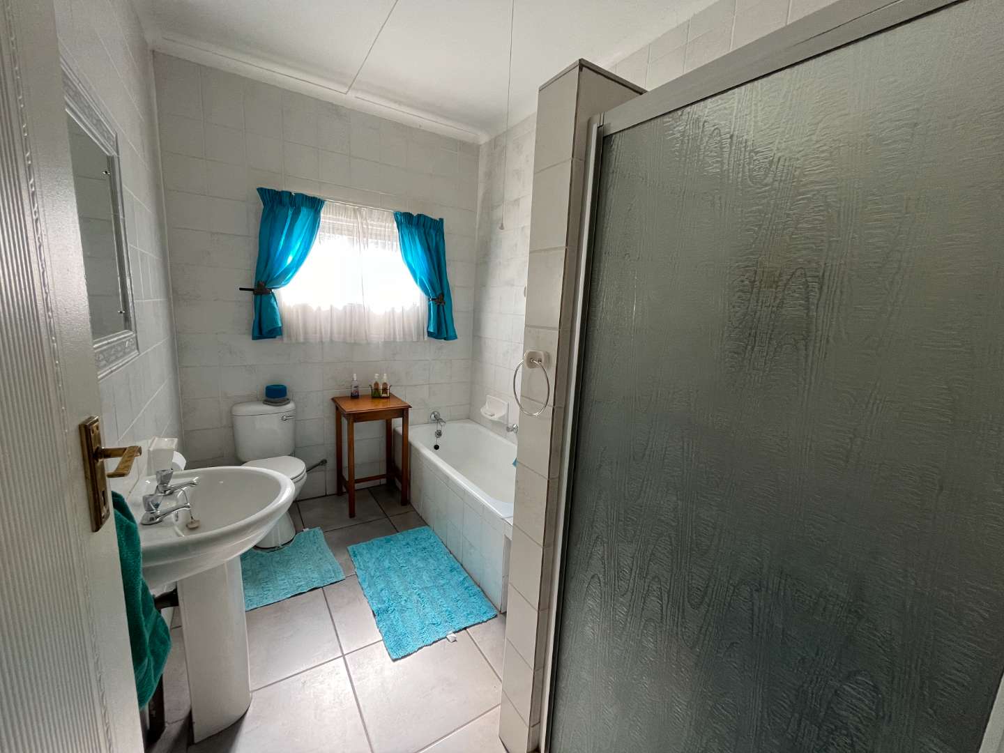 Extras include a solar power system, solar geyser, and a gas geyser. There is a neat carport for four vehicles, as well as an additional covered parking area with a drive-through to the backyard. Relax around the sparkling fenced swimming pool and thatched lapa—perfect for summer days. The garden has auto irrigation.