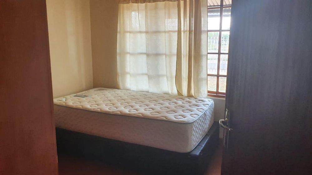 The open-plan kitchen flows into the dining area, creating a functional layout for everyday living. A separate laundry area adds convenience and keeps the main living spaces clutter-free. From the dining room, doors open directly onto a covered braai area — a welcoming space to entertain guests or enjoy relaxed weekends at home.