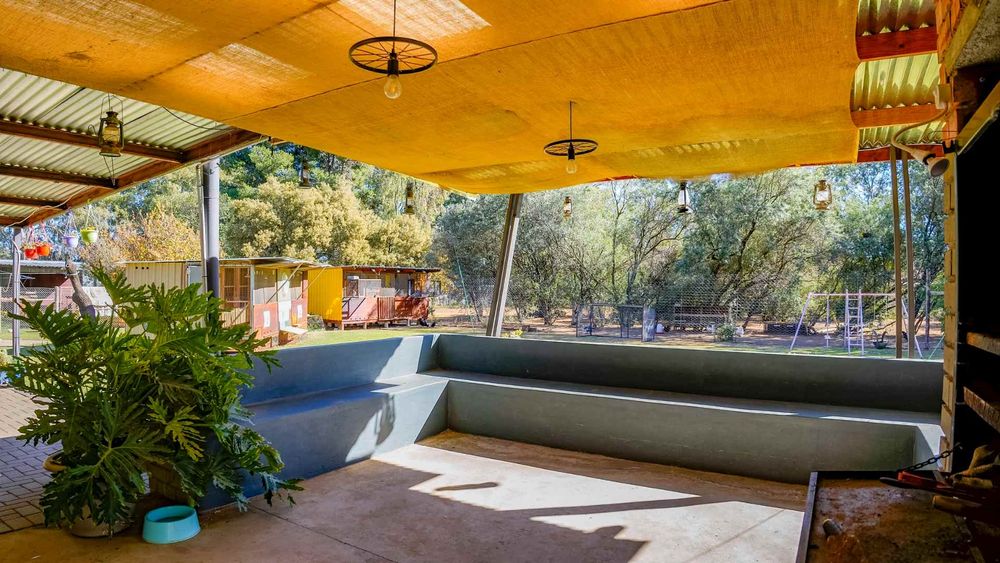 The outdoor entertainment area is a standout feature, offering a covered patio with a built-in braai and seating — perfect for relaxed gatherings overlooking the garden. The enclosed swimming pool area provides added safety and privacy, along with an outdoor toilet. Two igloo-style structures add flexible utility, with one currently used as a laundry. Two large carports accommodate up to six vehicles or provide additional storage space.