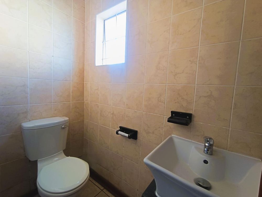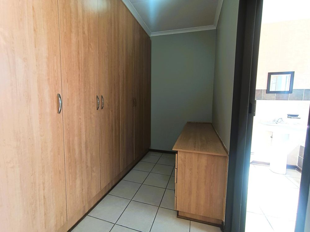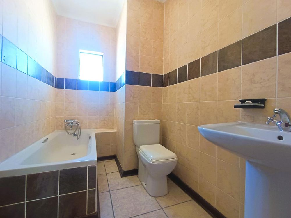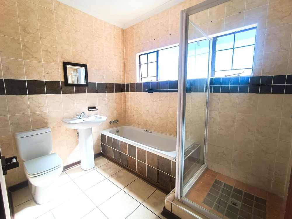 Upstairs, you’ll find four tiled bedrooms, one of which is fitted with cupboards designed for a study — ideal for remote work or homework space. The master suite features a dressing area, full en-suite bathroom, and access to a balcony overlooking the garden. A second bedroom also offers direct balcony access and comes with its own shower and basin. A second full bathroom services the remaining bedrooms, making this home as practical as it is comfortable.