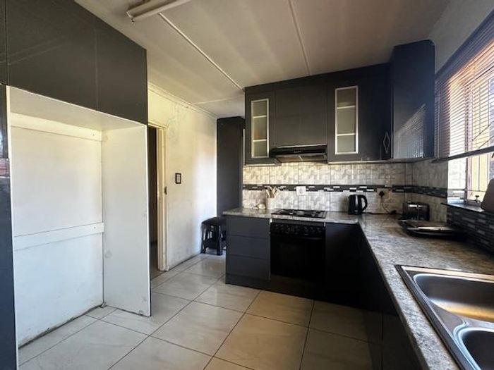 Inside, the home is neatly tiled throughout, giving it a clean and modern feel. The open-plan lounge and dining area, complete with air conditioning, flows seamlessly into a beautifully designed kitchen. With ample built-in cupboards, a stove with under-counter oven, space for all your appliances, and a separate scullery, this kitchen is both practical and stylish.