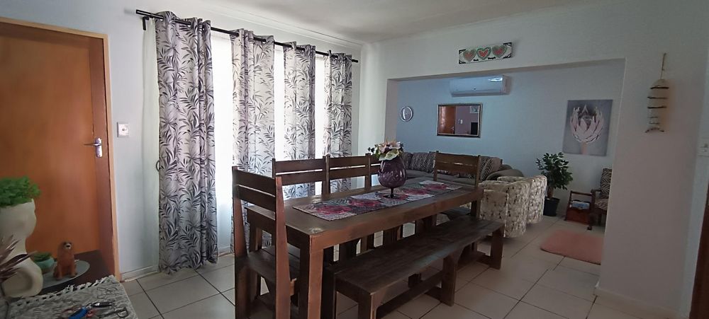 As you step inside, you'll be greeted by the inviting ambiance of the spacious and airconditioned lounge that seamlessly connects to the dining room and kitchen. The kitchen boasts ample cupboard space, a built-in stove, and an under-counter oven, making meal preparation a breeze.