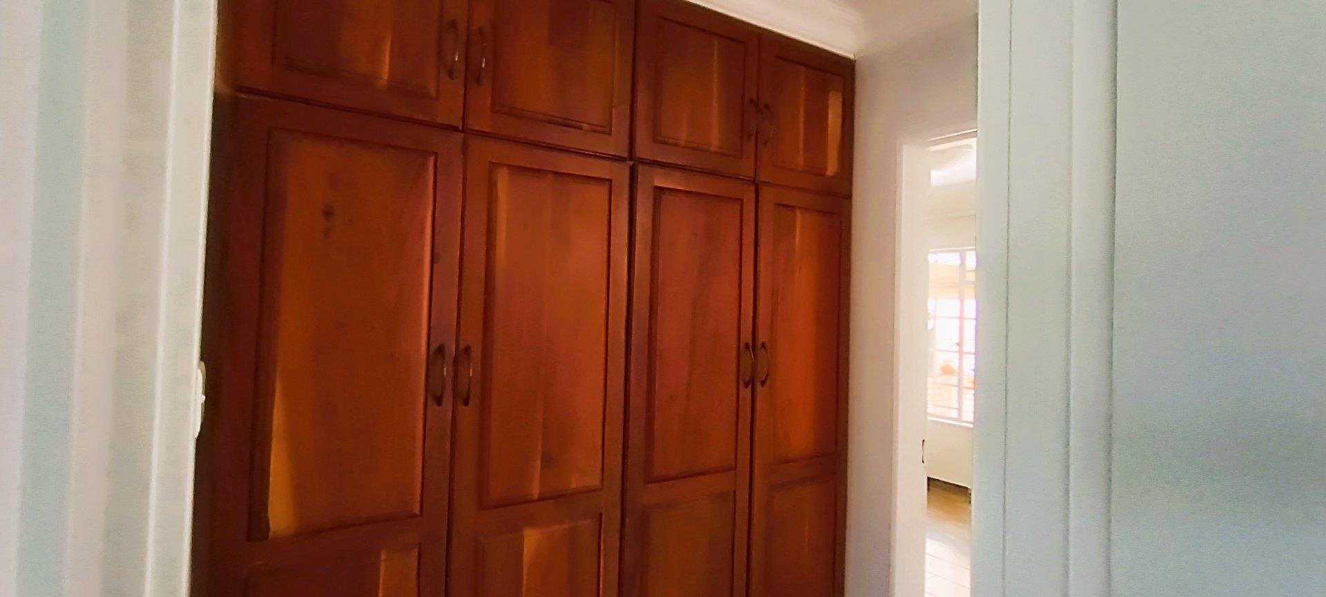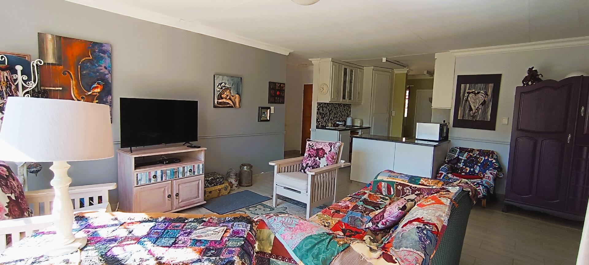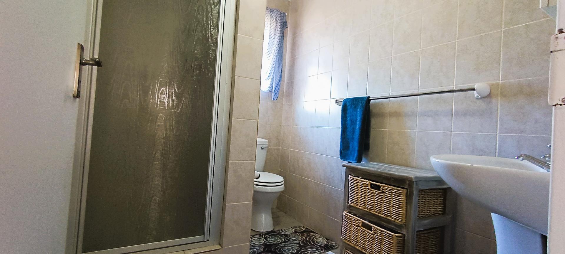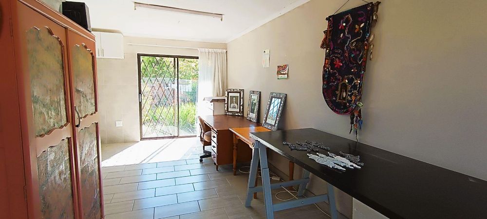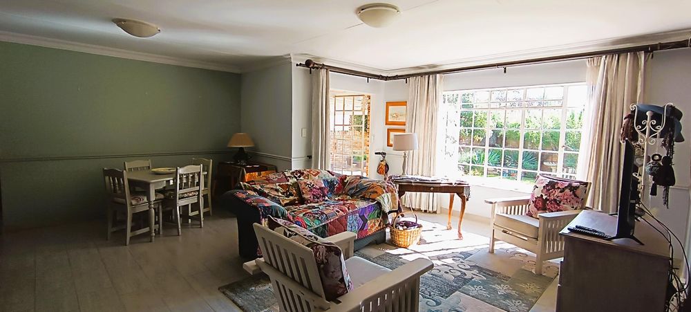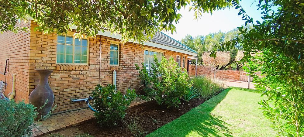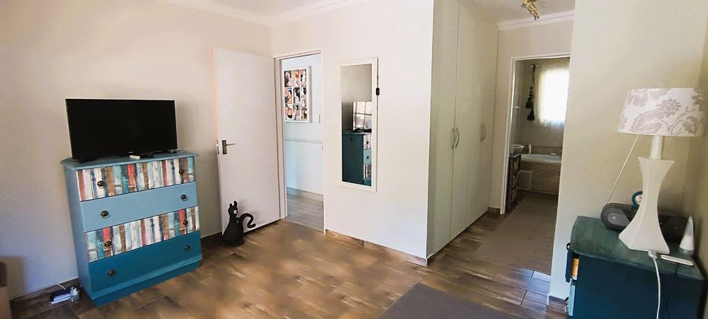 Outside, a large patio with a louvre roof and built-in braai beckons for outdoor enjoyment, whether sipping morning coffee or hosting gatherings with friends and family.