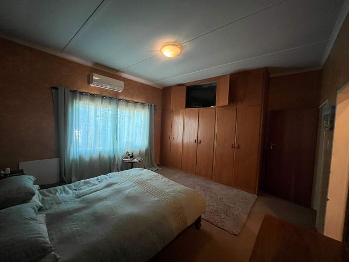 Spacious family home near Upington with four bedrooms, pool, garden, outdoor amenities, and security features. Ideal for tranquil living.