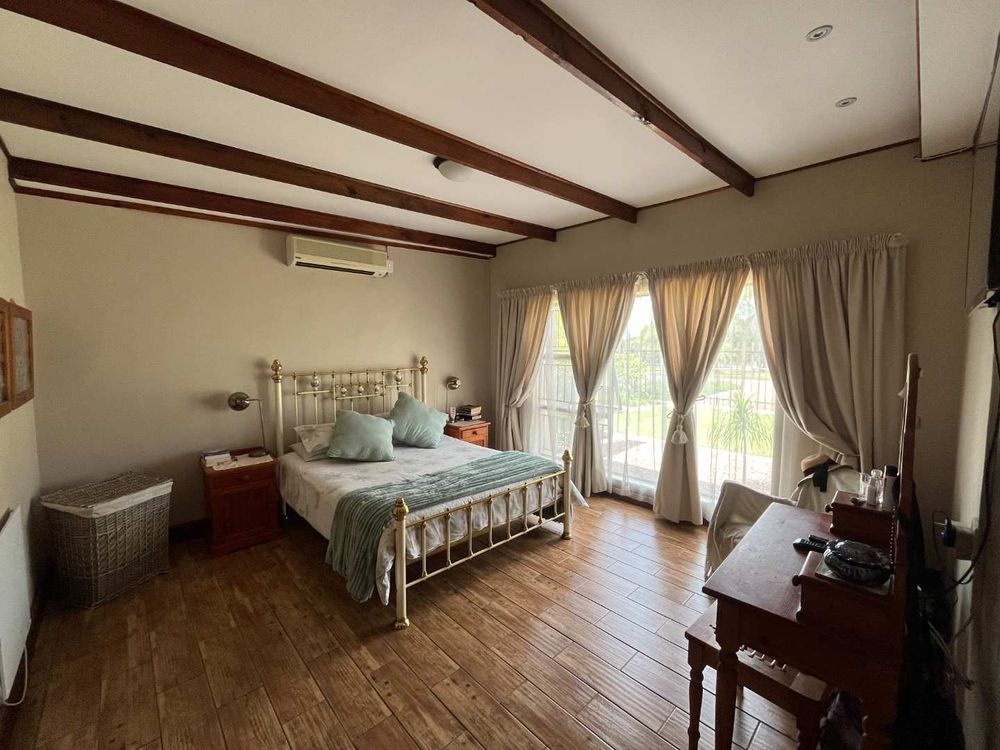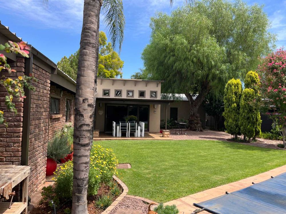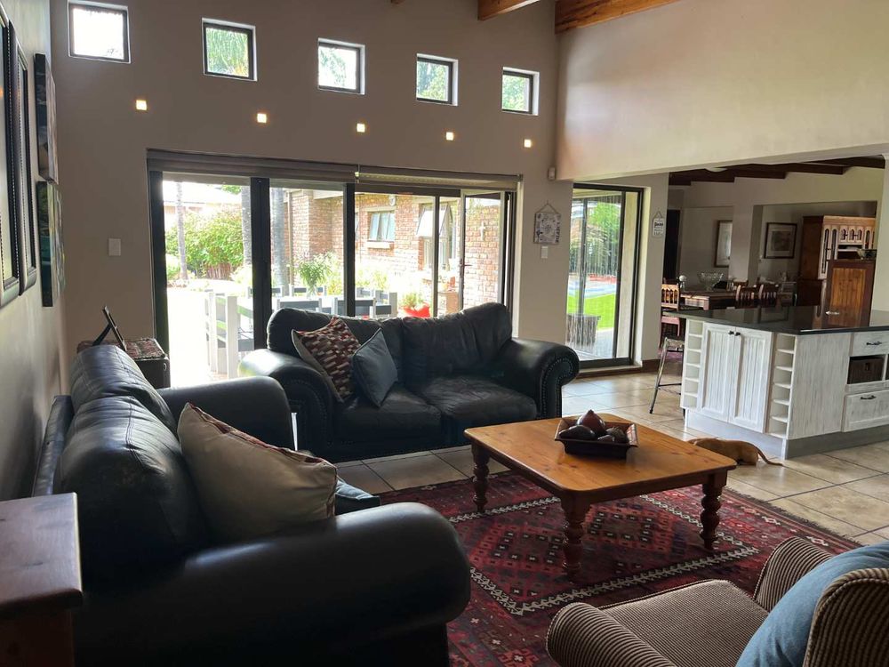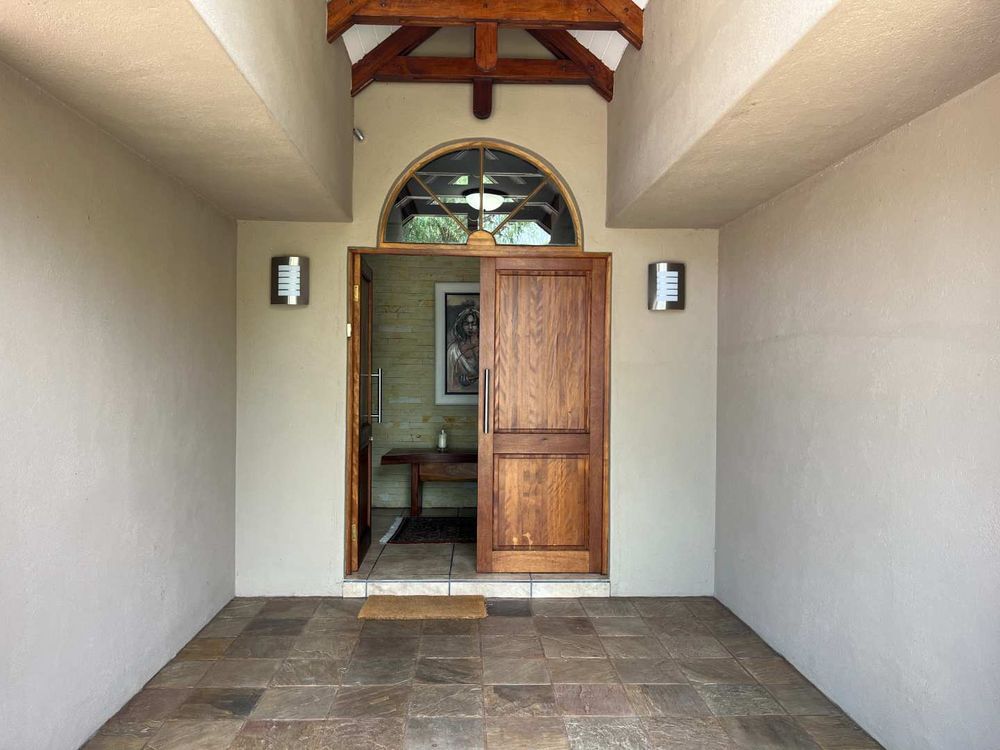 A striking large wooden front door welcomes you into an impressive entrance hall, setting the tone for the elegant interiors that follow. The home boasts expansive open-plan living spaces, including a sophisticated lounge, dining area, and a spacious TV/family room with built-in braai, designed for effortless entertaining and relaxed family living.