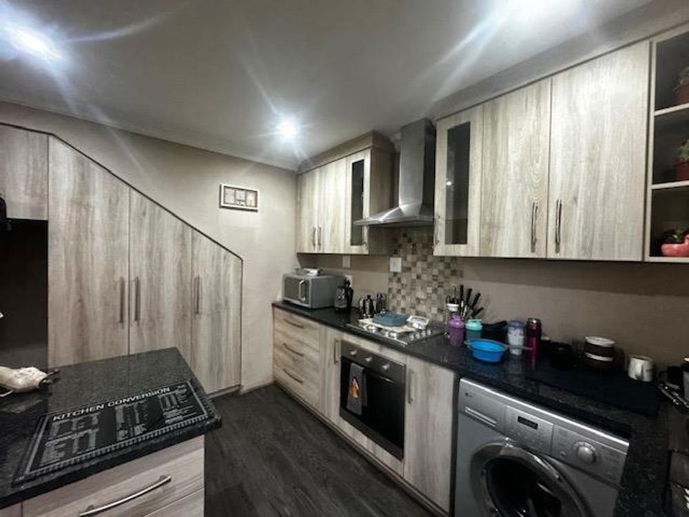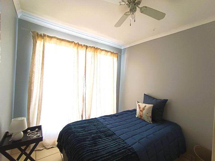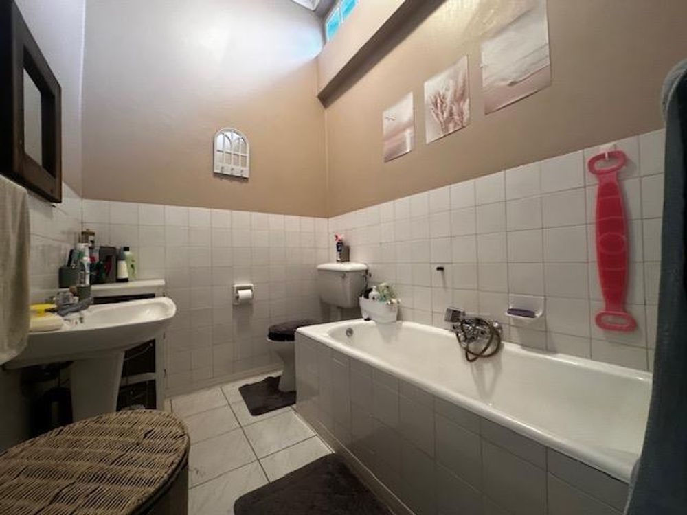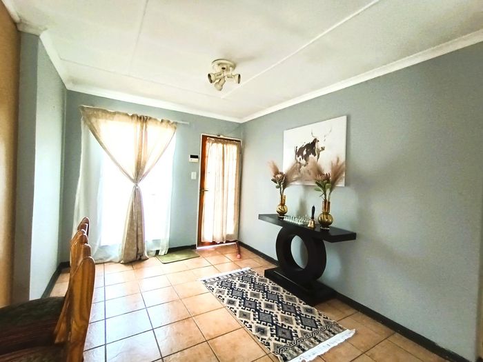 The bathroom is fitted with a bath, basin and toilet, completing the home’s functional layout. Set within a secure complex, this townhouse offers peace of mind along with a low-maintenance lifestyle.