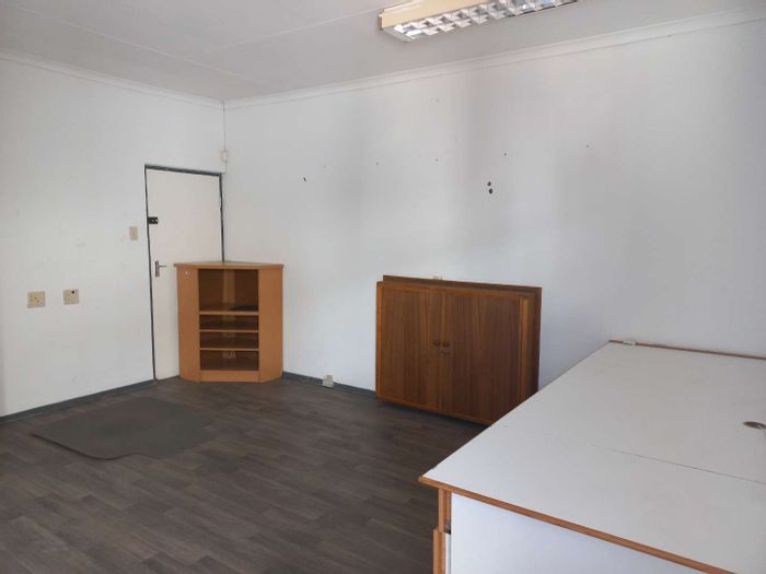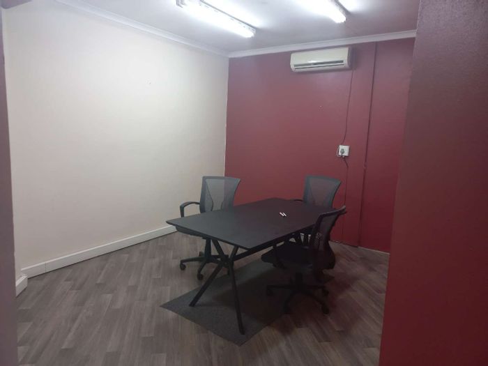 Three offices with kitchen, walk-in safe, private and communal toilets, separate entrances, prepaid electricity, and alarm system.