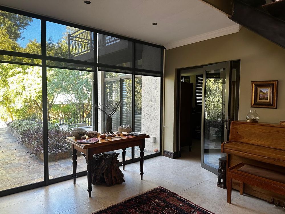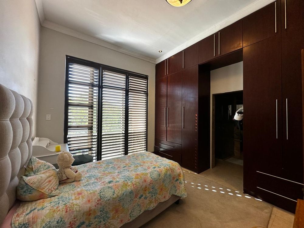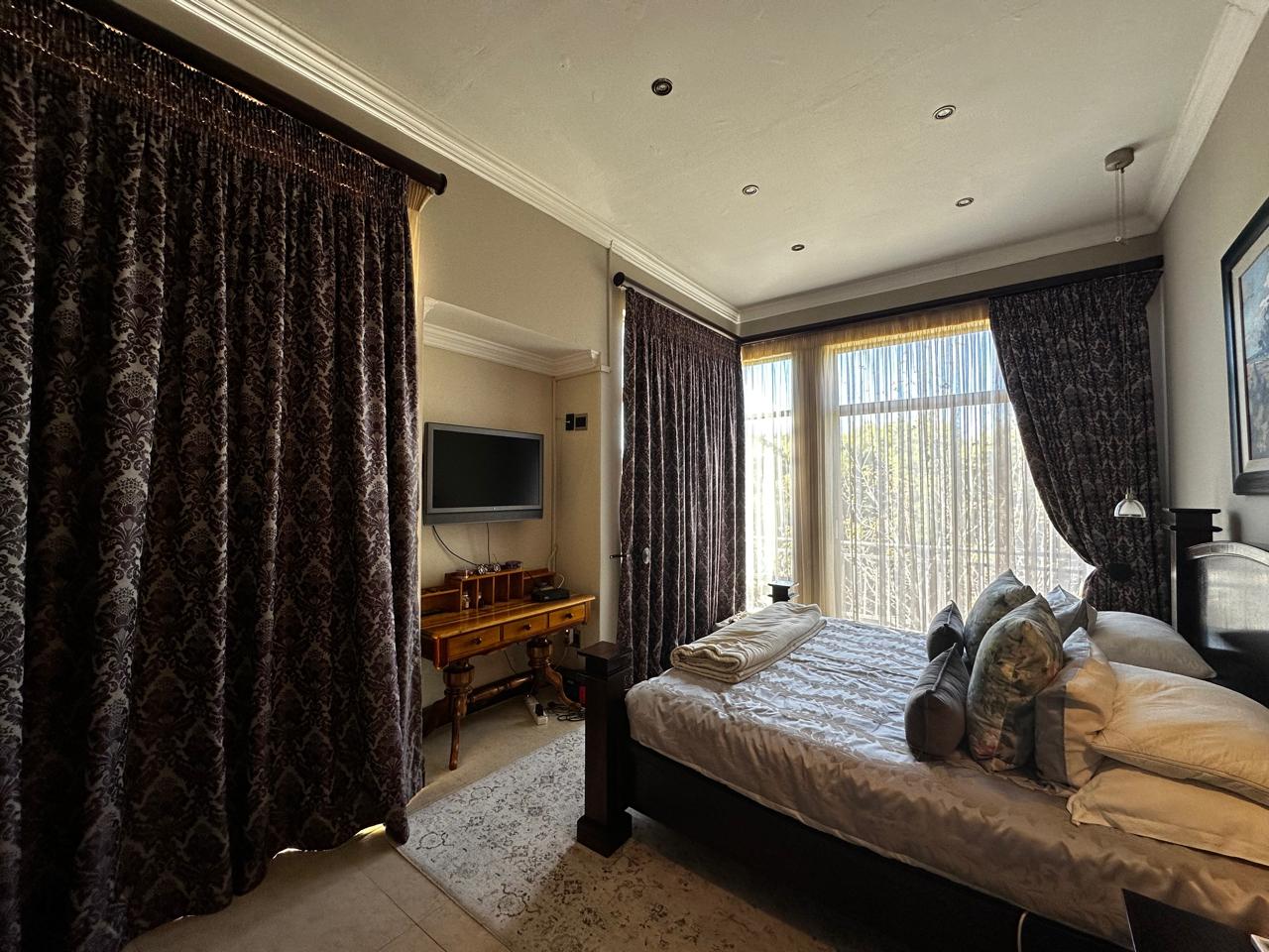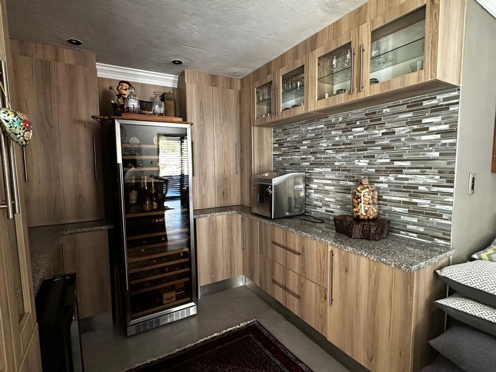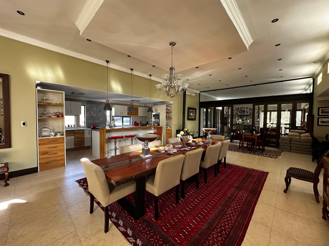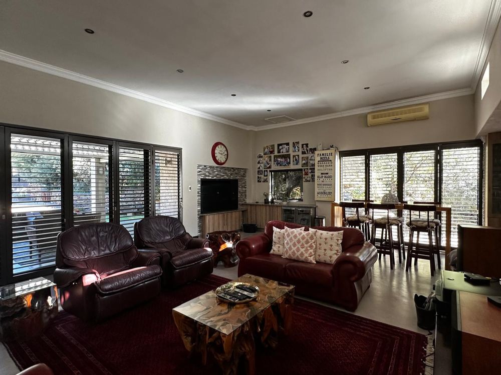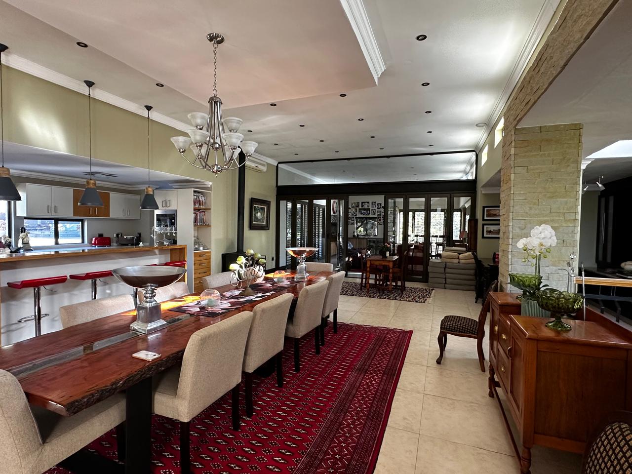There are four bedrooms on this level, three of which have en-suite bathrooms. The TV room opens onto a lovely stoep with a louver roof, offering views of the pool, braai area, boma, and surrounding greenery.