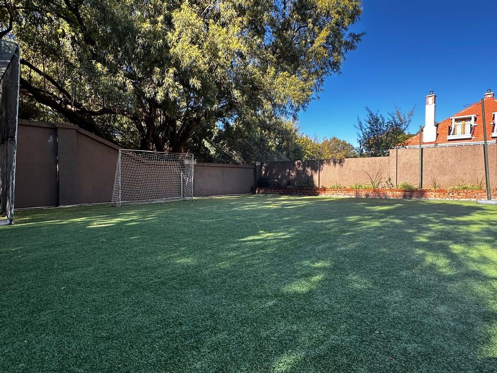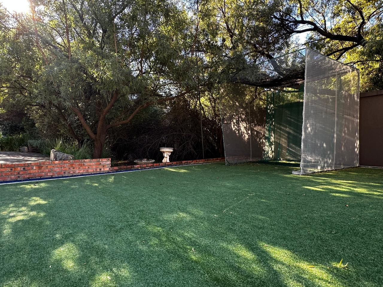 The outdoor space is equally impressive, with Astro turf, a netball pole, and a cricket net. The property also features a 7.5 Kw solar grid and 20,000 liter water tanks, ensuring sustainability and efficiency. Additionally, there are three automated garages for added convenience.