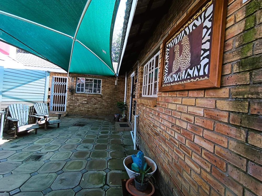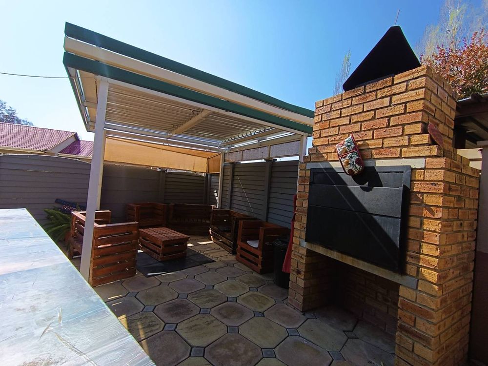 Sliding doors from the living area lead to a charming backyard retreat — perfect for entertaining — with a built-in braai and a covered louvre-roof patio.