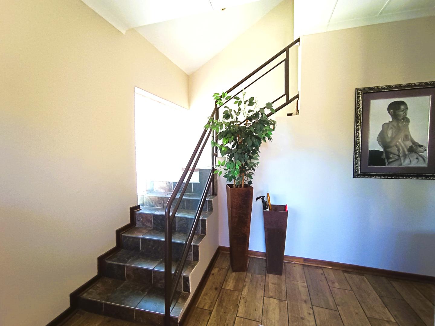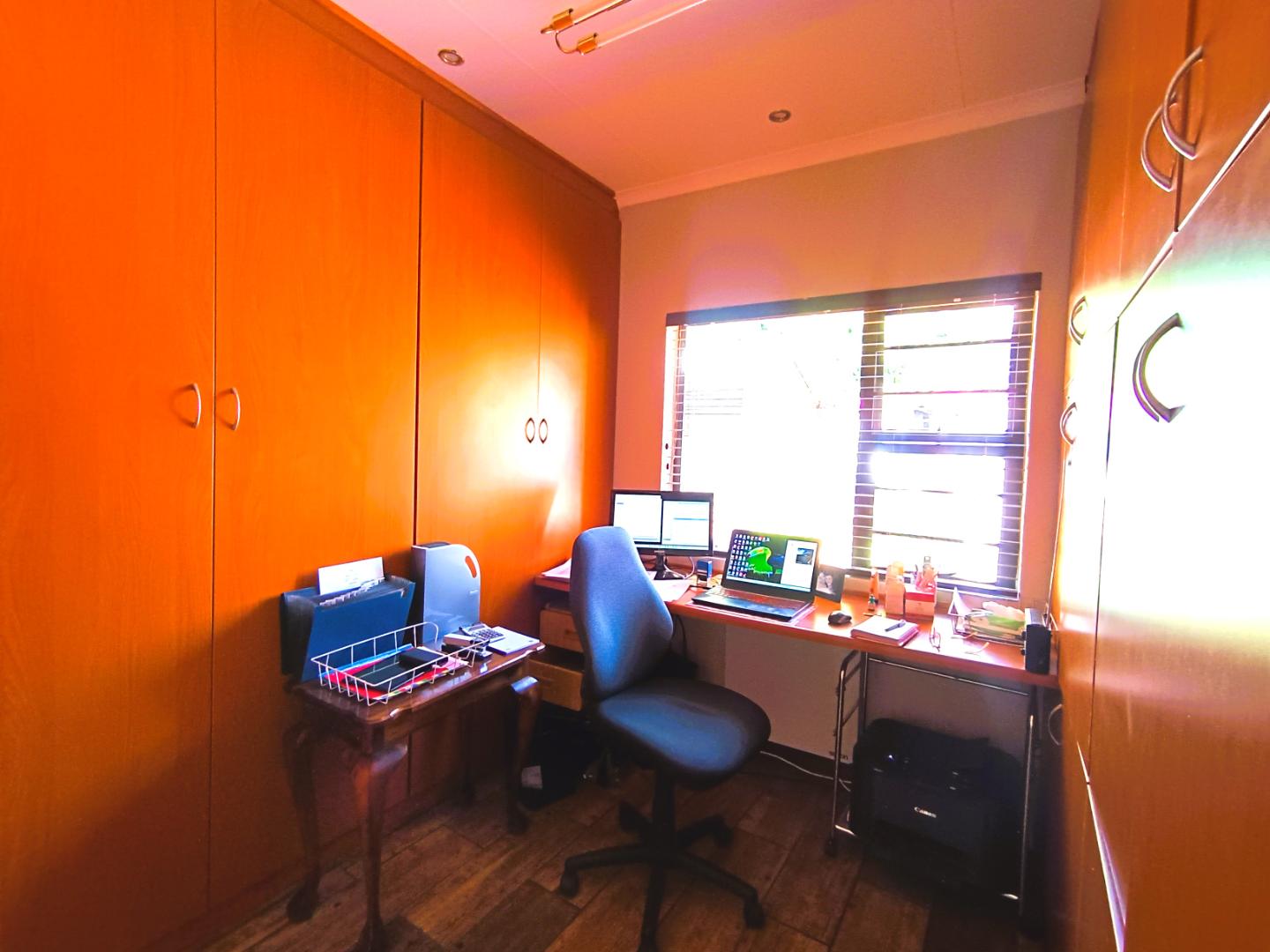 Outside, you’ll find two electric garages, secure parking for two additional vehicles, and an electronic gate for peace of mind. The property also includes a domestic room with toilet and basin, a Wendy house for extra storage, and a low-maintenance garden with an irrigation system.