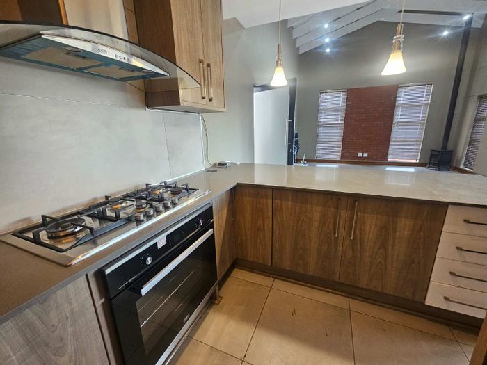 Tranquil creekside living in Wild Olive Estate, Bloemfontein — light-filled, north-facing home with private garden and covered patio with built-in braai; three bedrooms, 2.5 bathrooms and double garage.