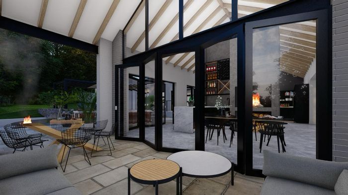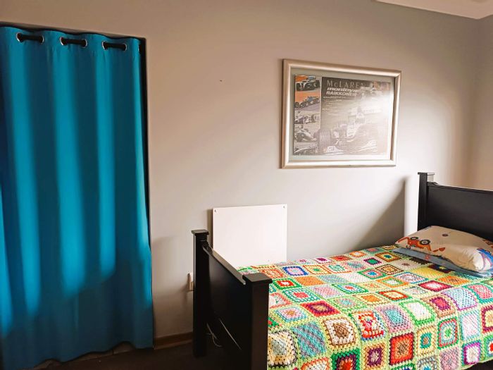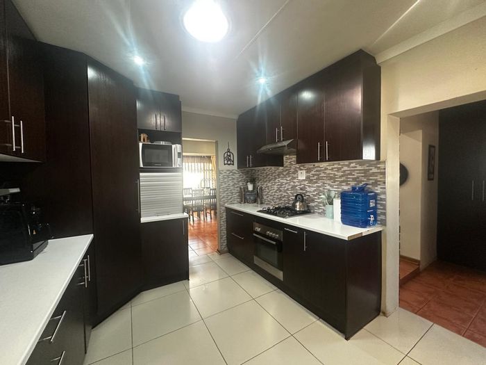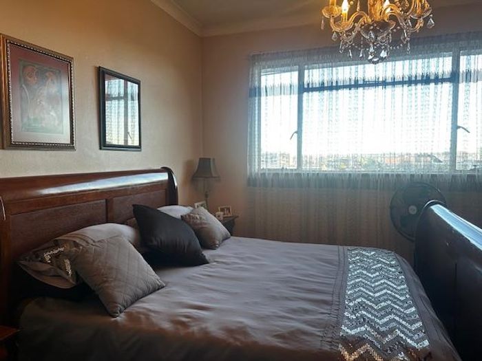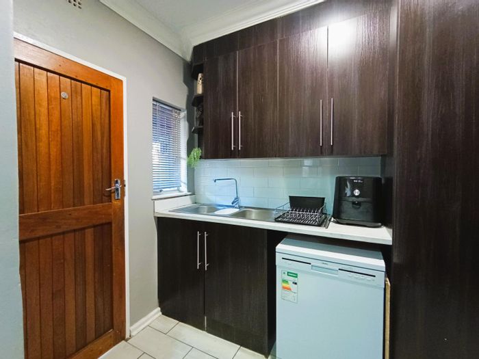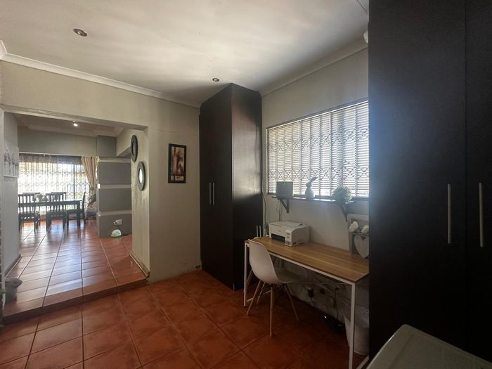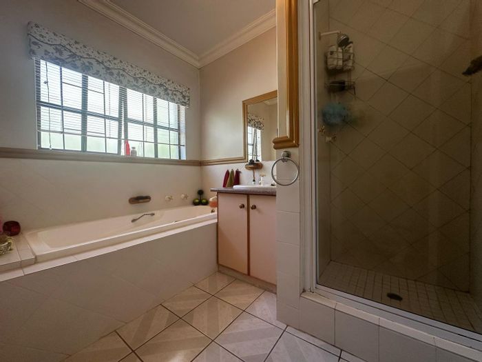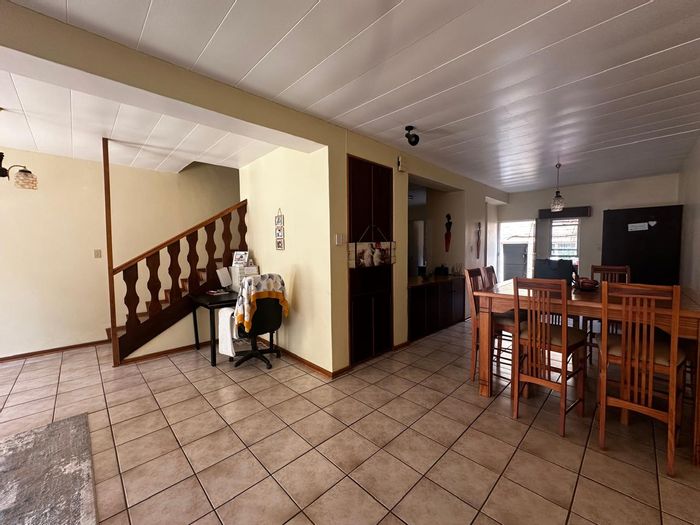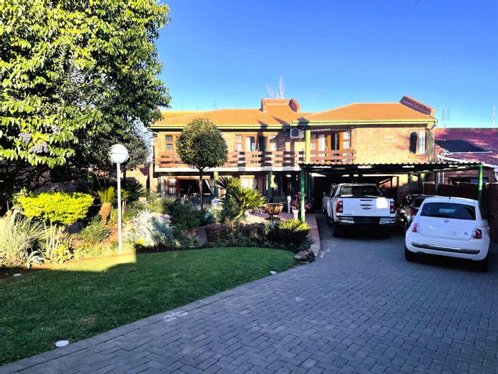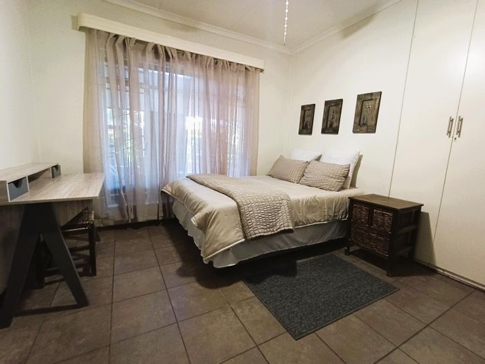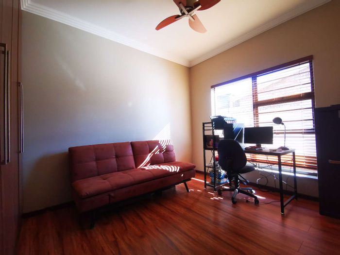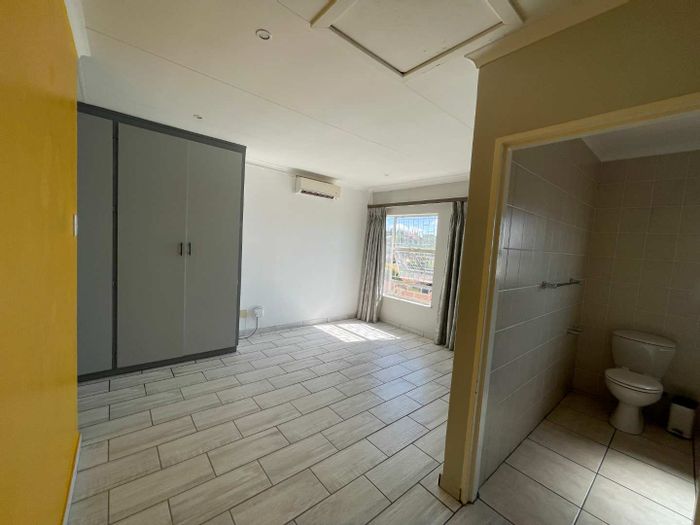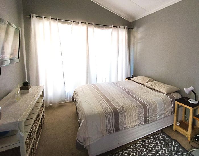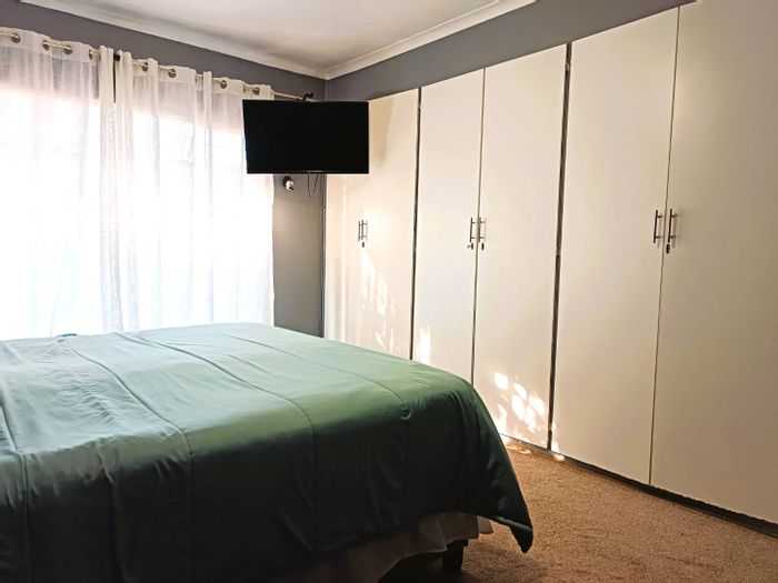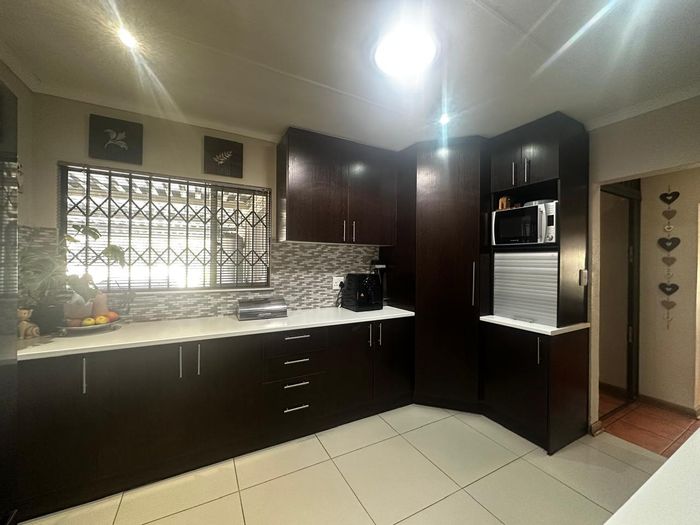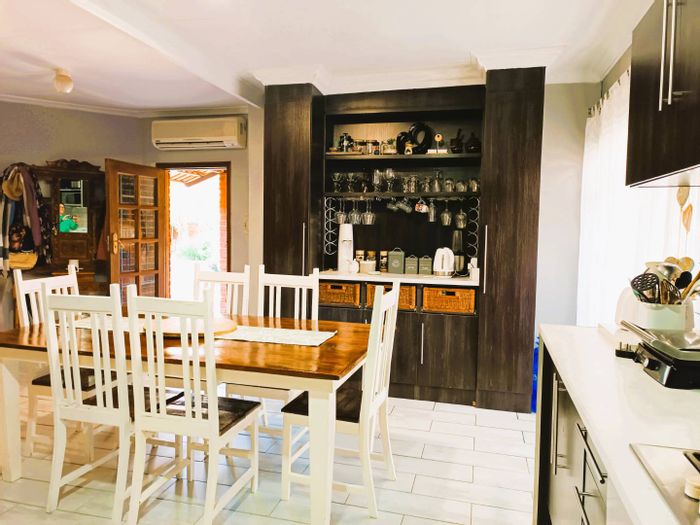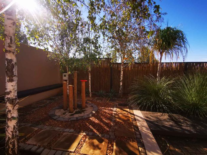 Solar-powered luxury in Bloemfontein — open-plan living with gourmet kitchen and enclosed braai, pool and low-maintenance garden, plus master suite with walk-in closet and spa bath. 3-bed, 2-bath, double garage.