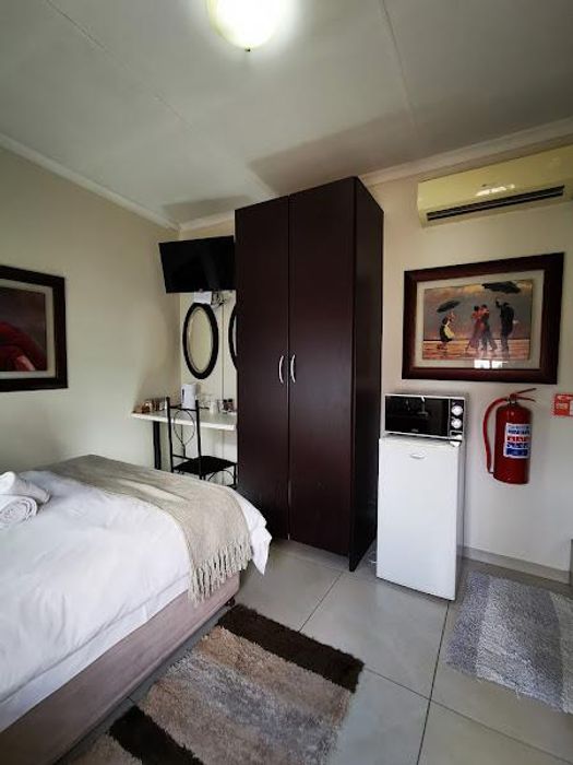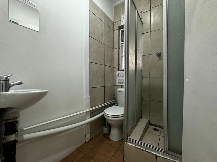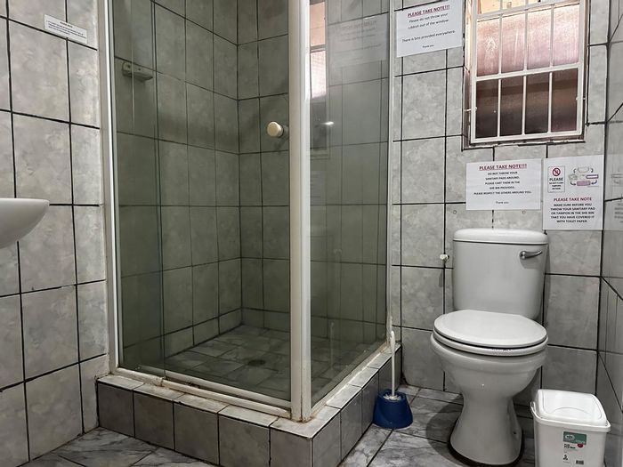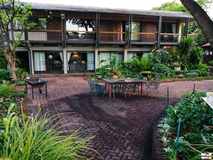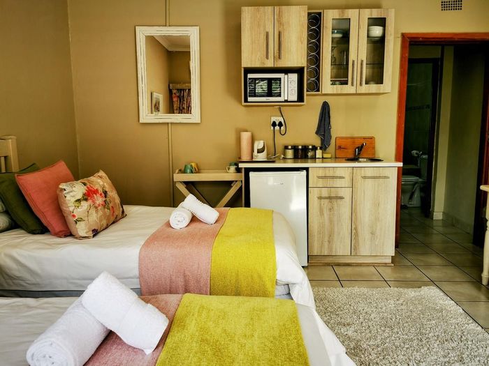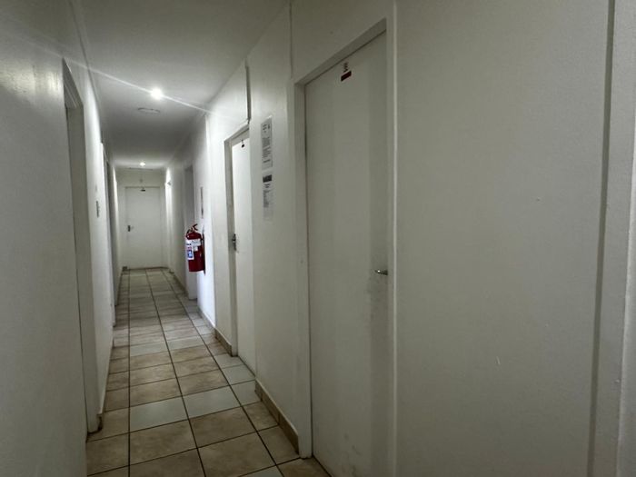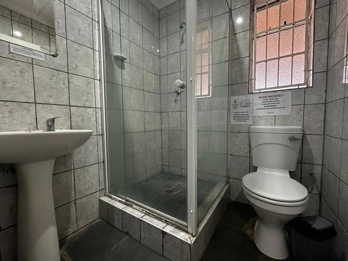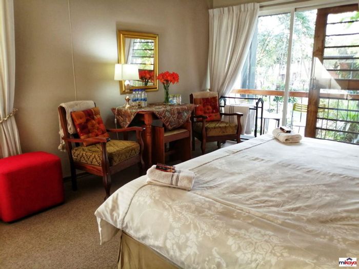 Bains Game Lodge offers a first-floor unit with a kitchenette, open-plan bedroom, balcony, full bathroom, on-site laundromat, and communal facilities. Rent options available.