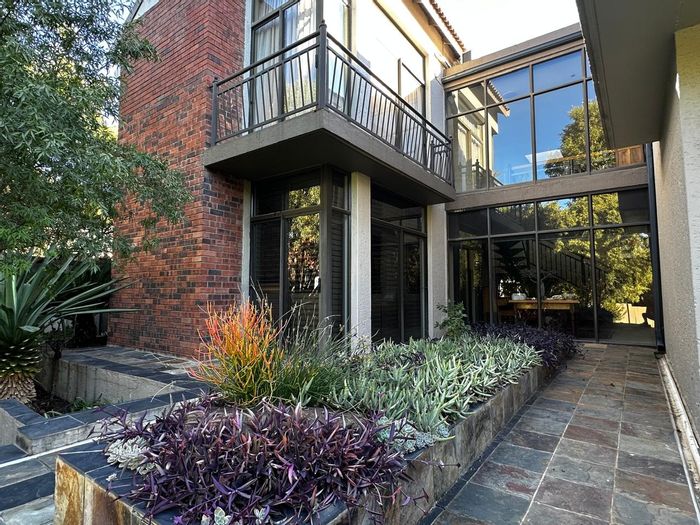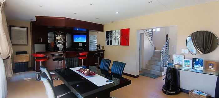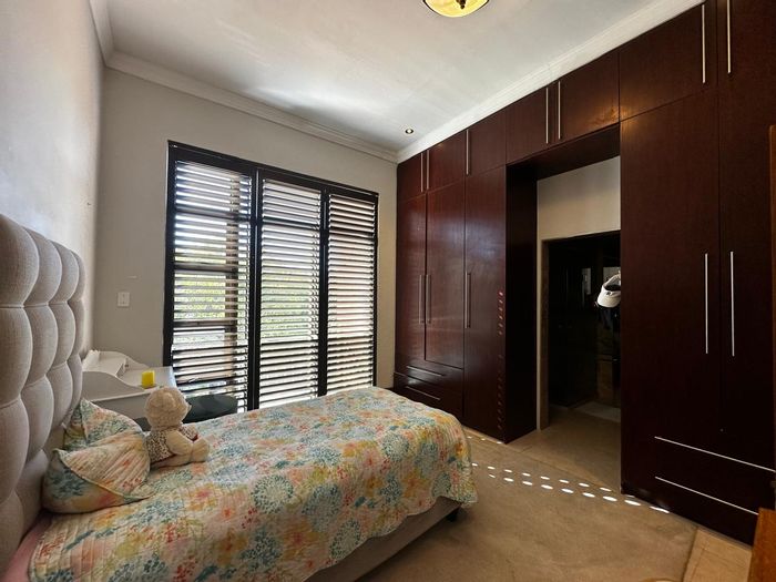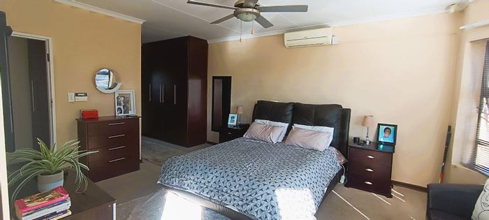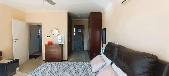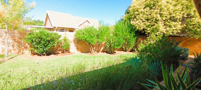 Meticulously maintained townhouse with lush garden, open-plan layout, luxurious master bedroom, converted garage, and outdoor patio with built-in braai.