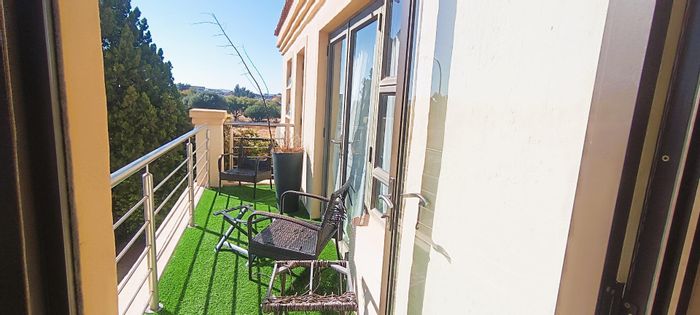 3-bedroom flat with balcony and view of Bloemfontein. Secure building with garage and covered parking. Prepaid electricity and water installed.