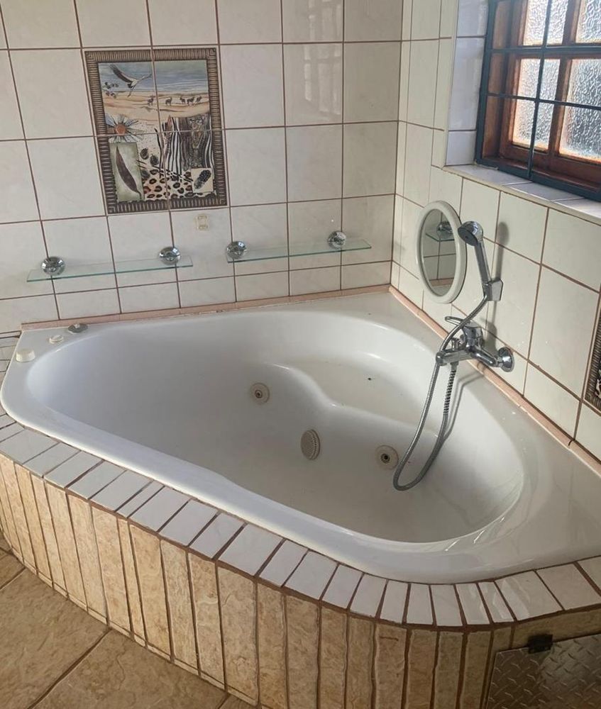 The main home features 4 spacious bedrooms, including en-suite bathrooms, multiple living areas, a dedicated study, and beautiful tiled finishes throughout. Entertain with ease at the built-in braai and bar, or relax beside the sparkling swimming pool surrounded by a private garden.