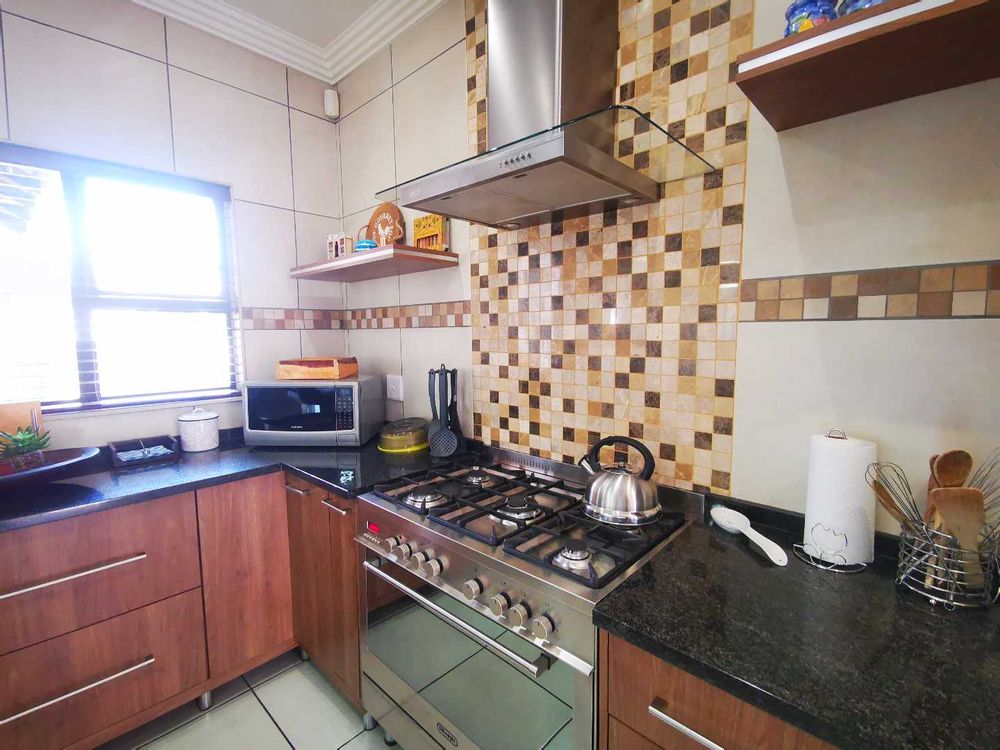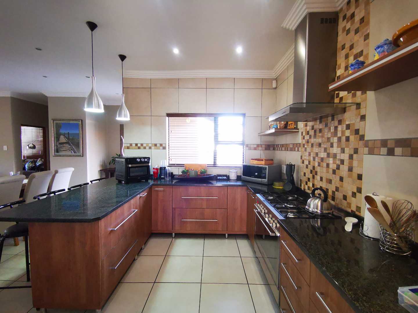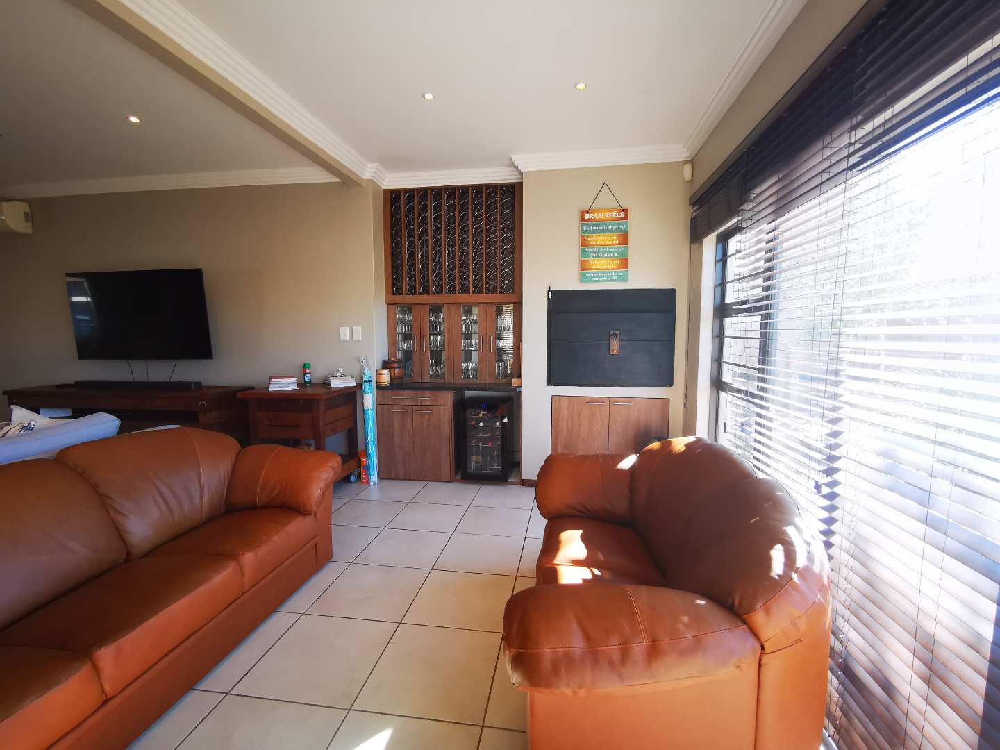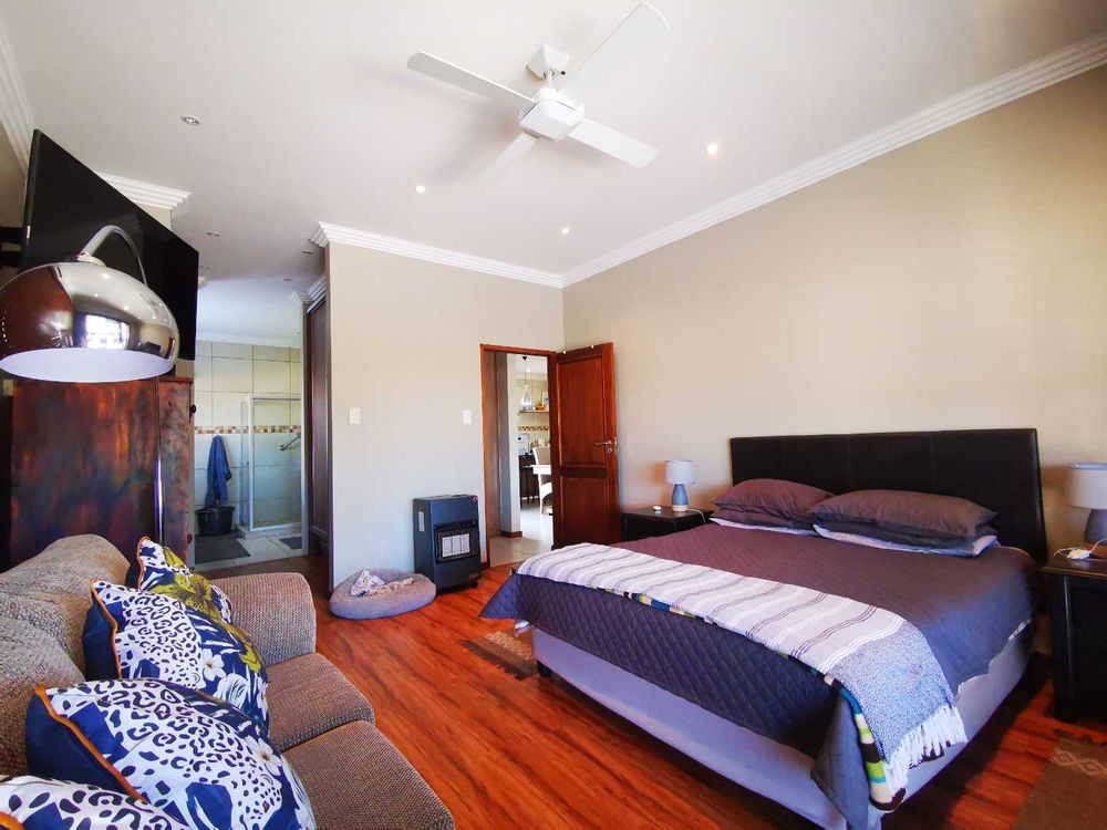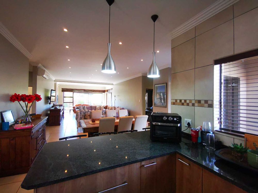 The master suite offers seamless indoor-outdoor flow, a designer walk-in closet, and a private spa-like bathroom. The gourmet kitchen with granite tops and gas hob flows into the entertainment area with an enclosed braai — perfect for year-round hosting.