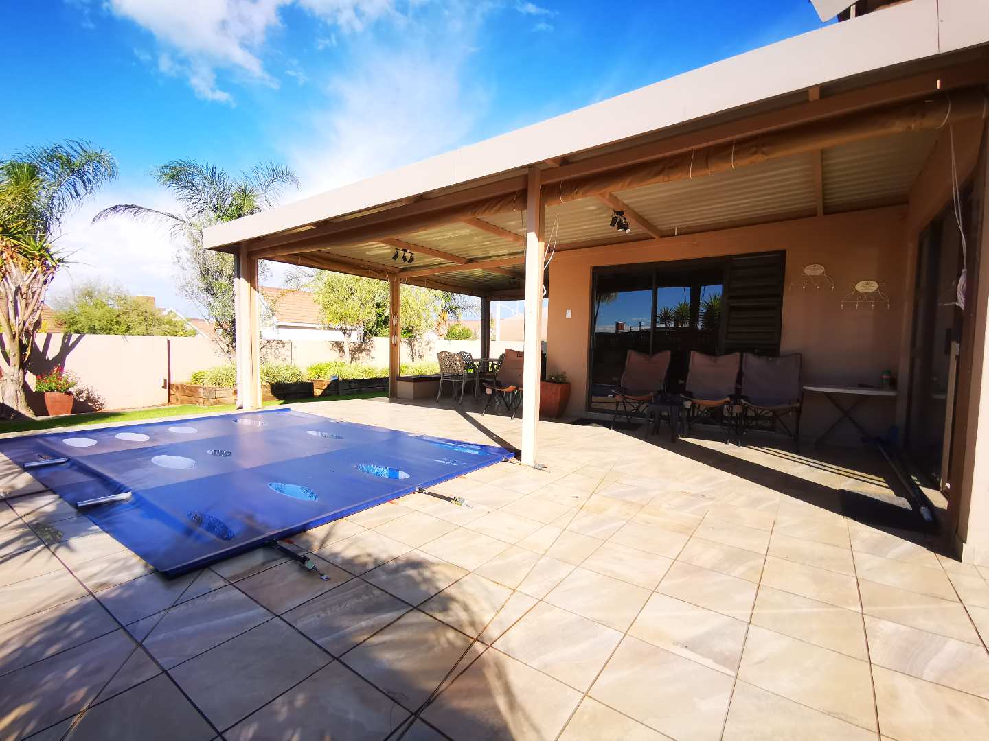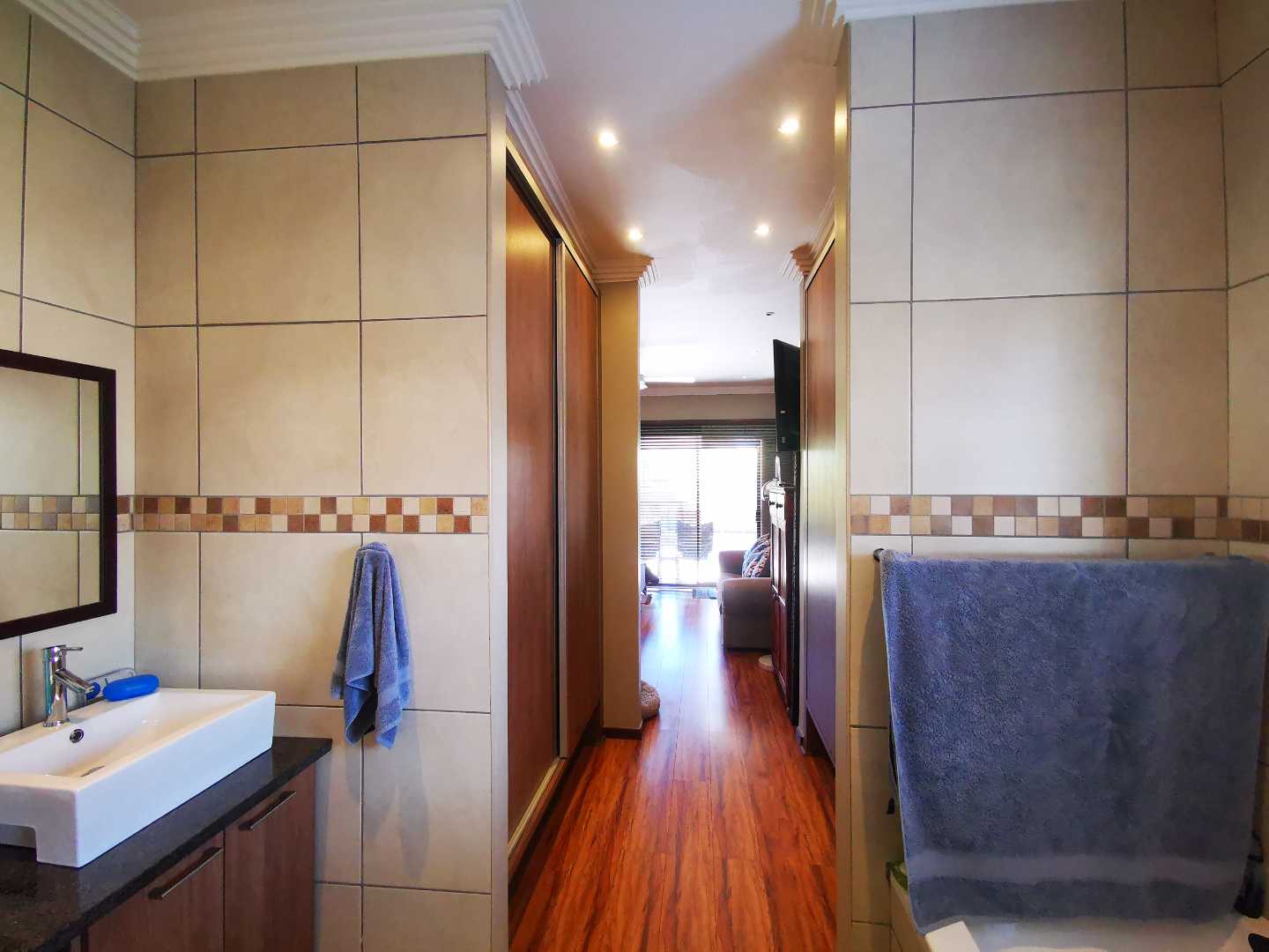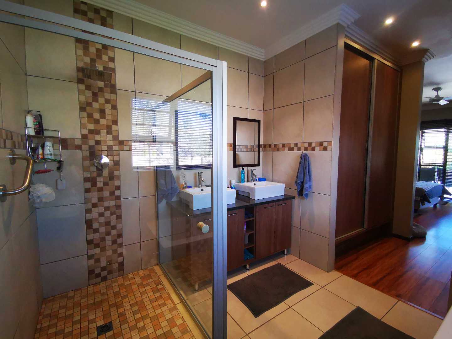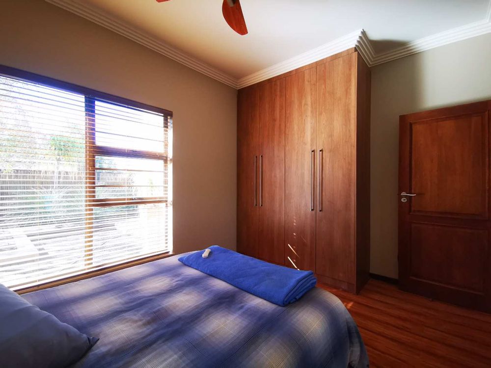 The master suite offers seamless indoor-outdoor flow, a designer walk-in closet, and a private spa-like bathroom. The gourmet kitchen with granite tops and gas hob flows into the entertainment area with an enclosed braai — perfect for year-round hosting.