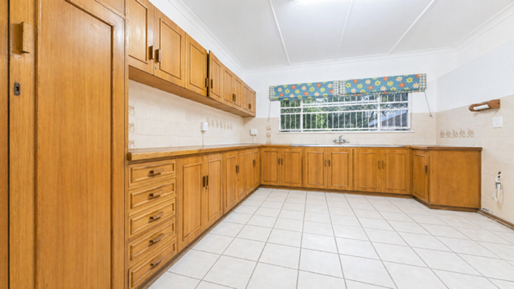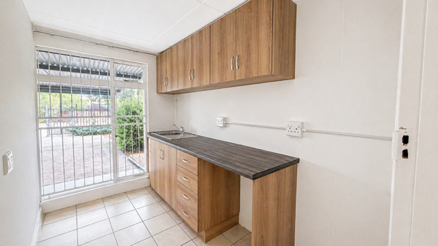 The kitchen is both functional and inviting, featuring ample built-in cupboards, a separate scullery, and dedicated space for your appliances — designed to keep everyday living practical and uncluttered.