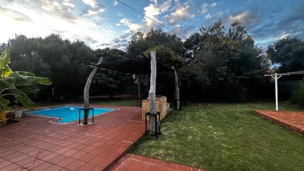 Outside is where this property truly shines. A well-maintained garden, sparkling fiberglass pool, and paved entertainment area with built-in braai set the stage for weekends spent with friends and family.
